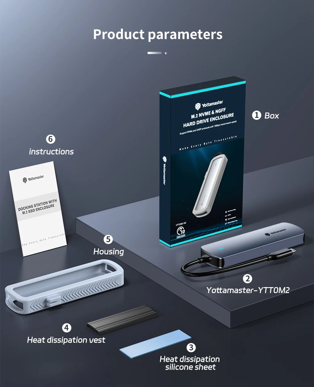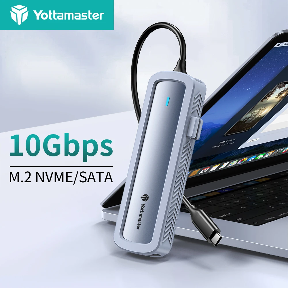 Comprar Yottamaster M.2 SSD Case 10Gbps NVME 5Gbps SATA Caja de disco duro externo de protocolo dual Caja SSD tipo C con cubierta de silicona