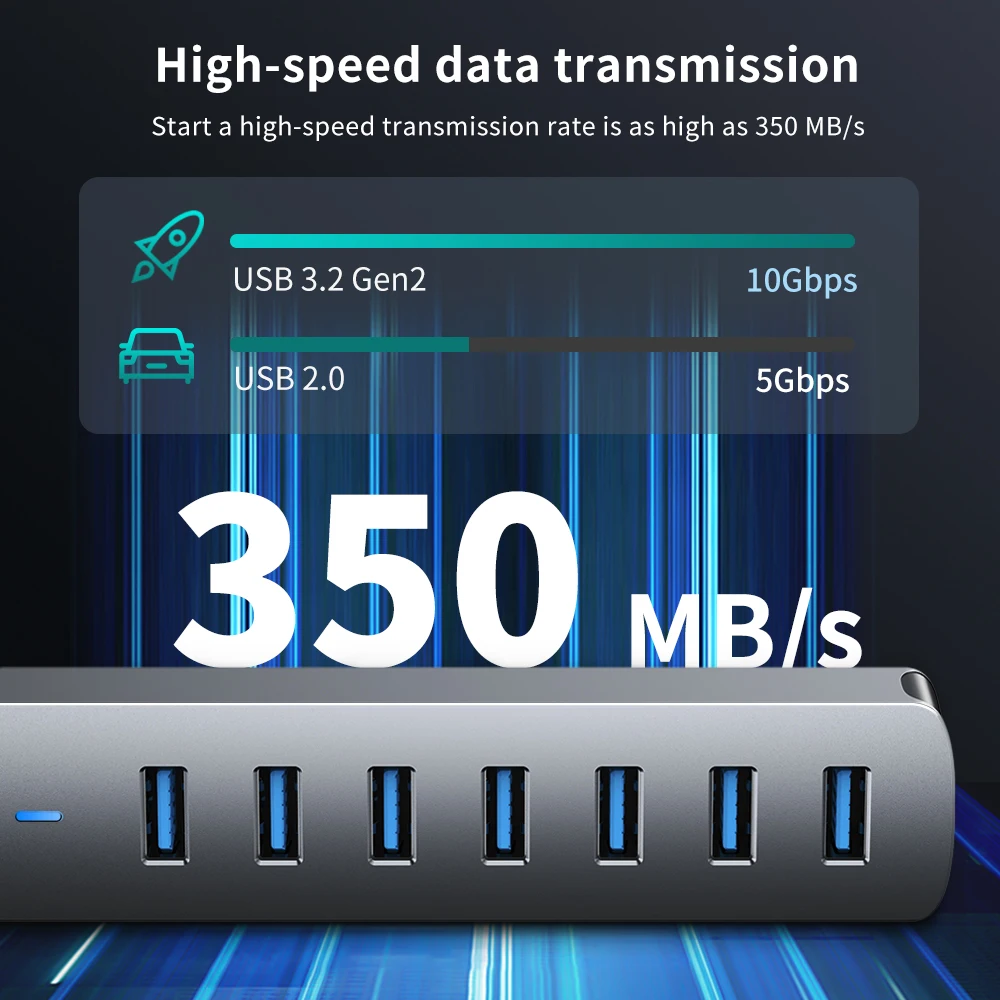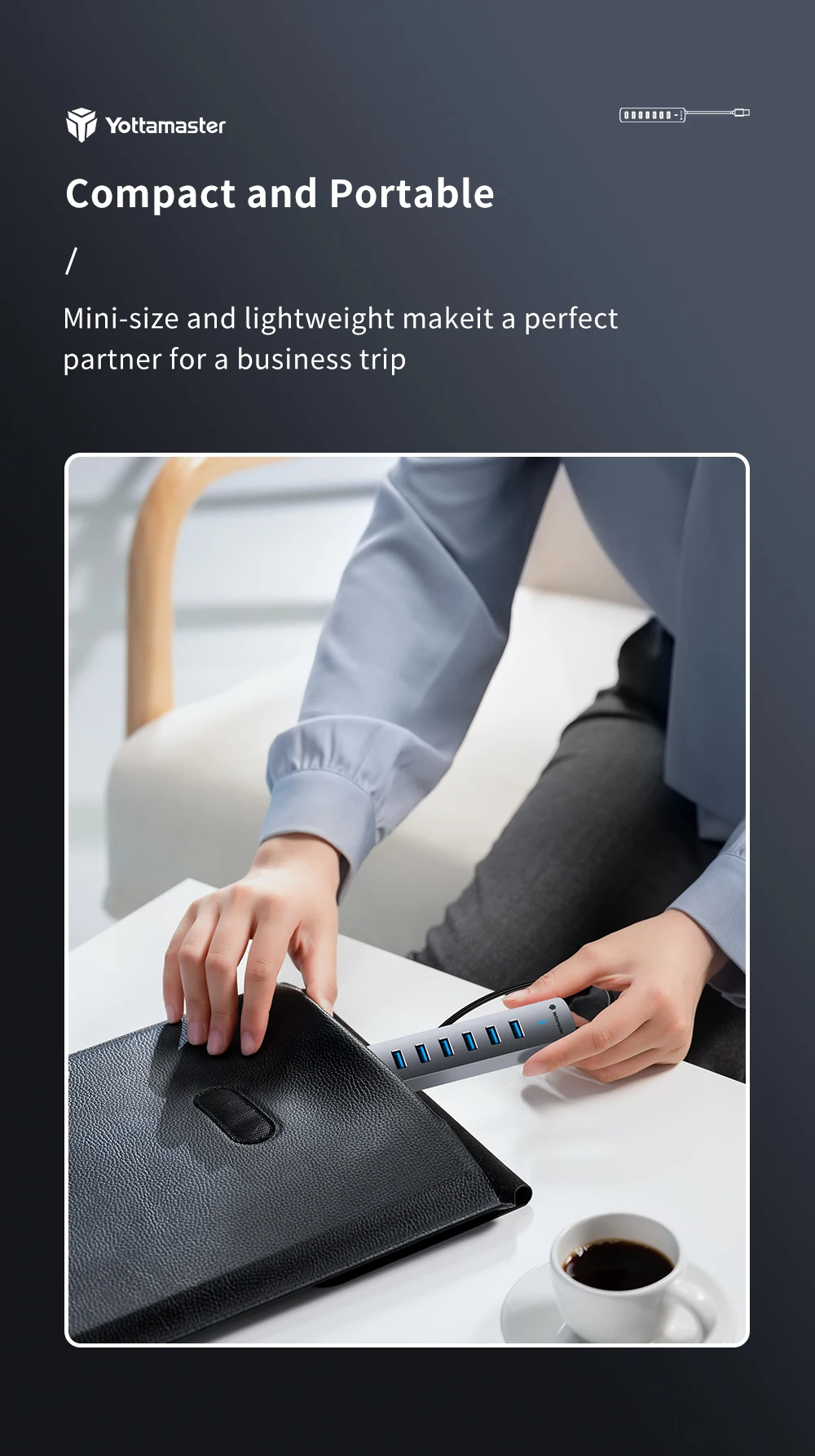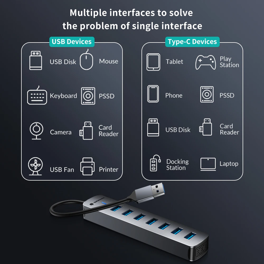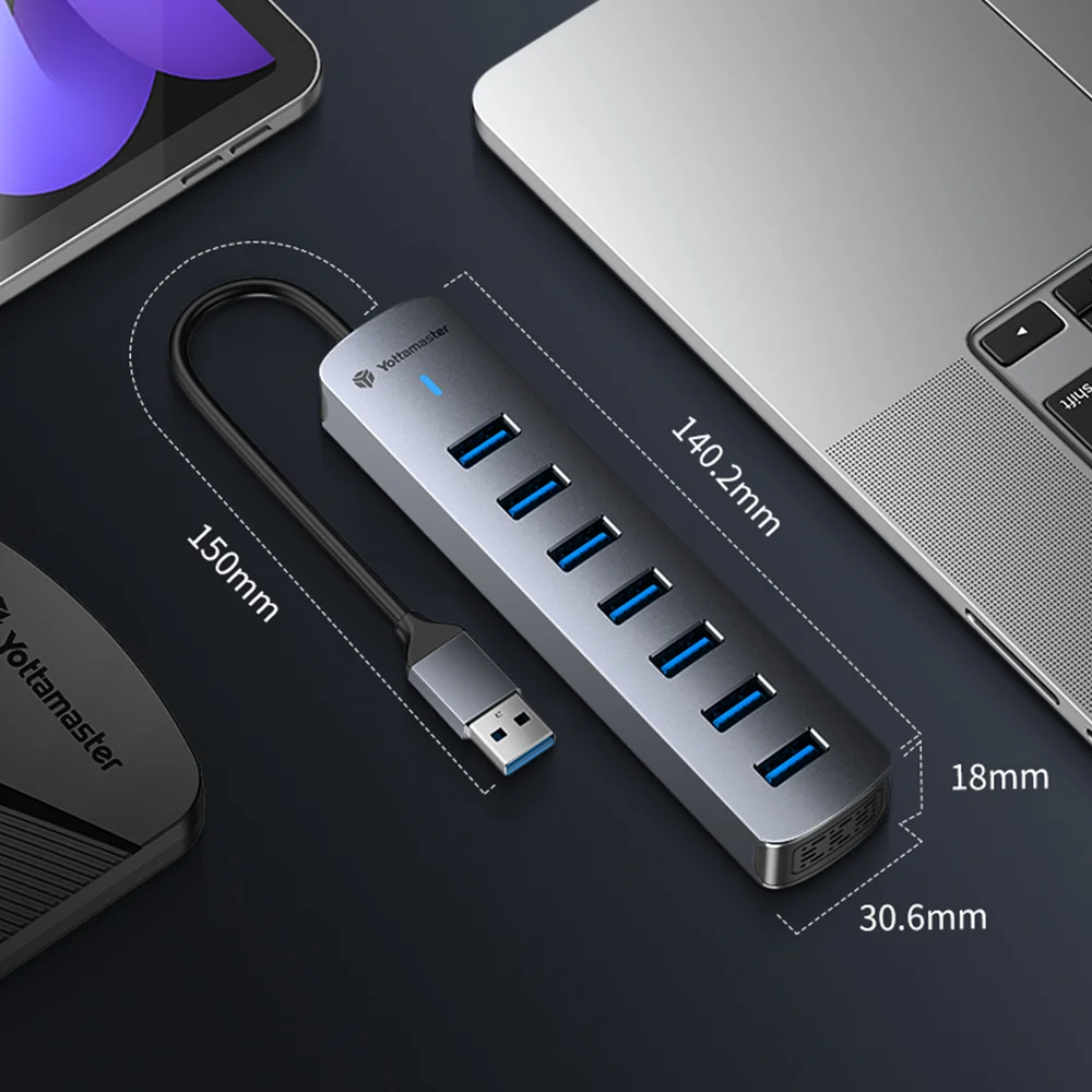 Comprar Yottamaster tipo C HUB USB HUB 7 puertos USB 3,0 divisor 5G USB HUB adaptador de estación de acoplamiento de expansión para PC/teléfono/portátil