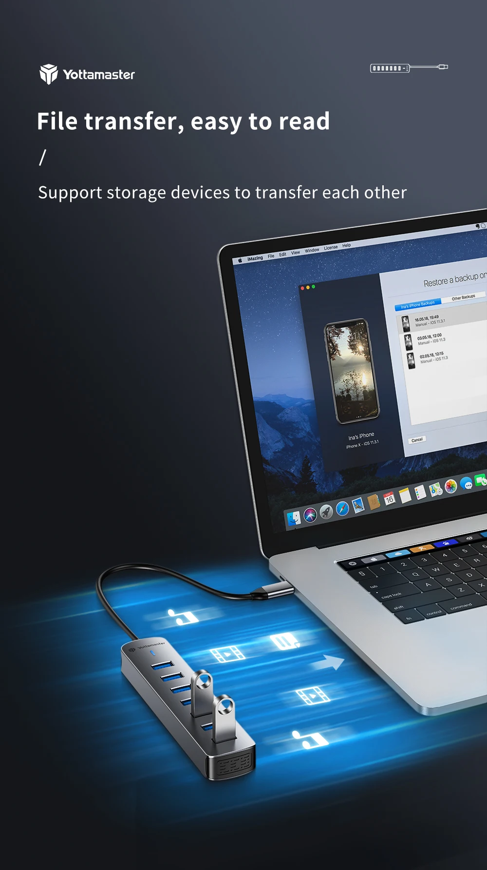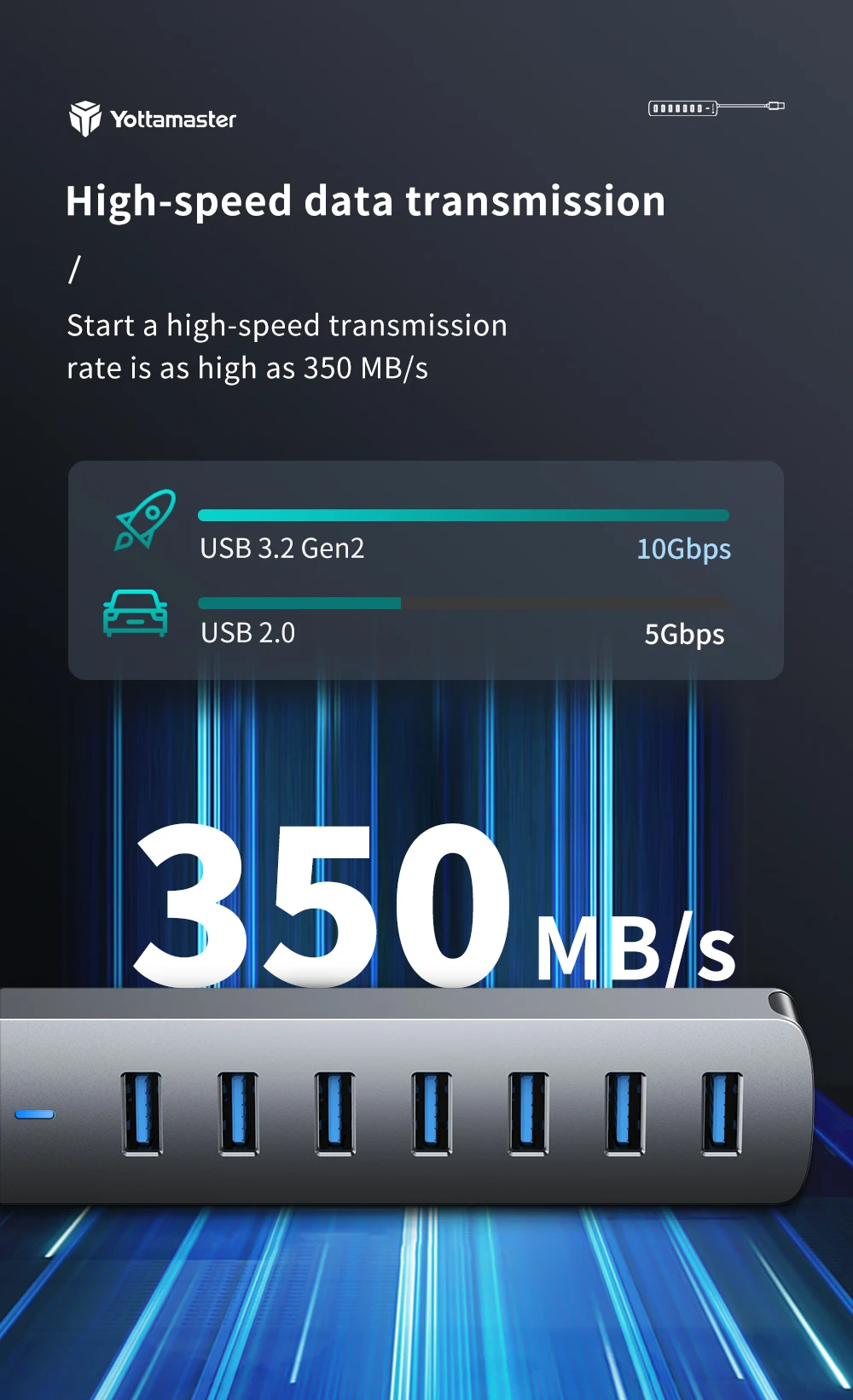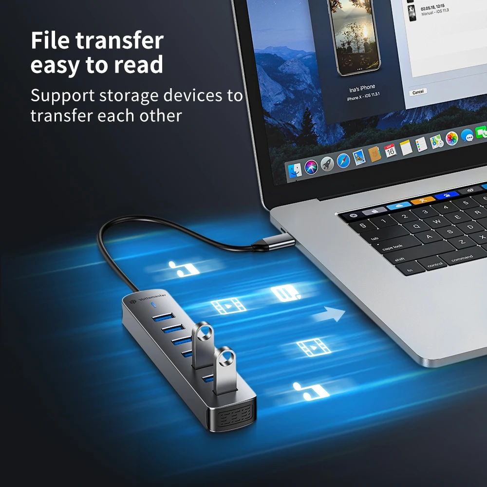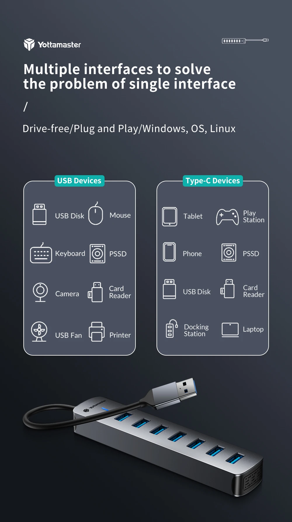 Comprar Yottamaster tipo C HUB USB HUB 7 puertos USB 3,0 divisor 5G USB HUB adaptador de estación de acoplamiento de expansión para PC/teléfono/portátil