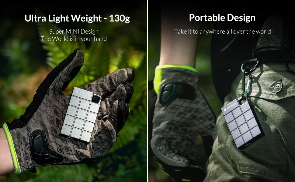 El mundo está en tu mano. Con capacidades de hasta 128GB/256GB/512GB/1TB en una carcasa pequeña y ligera. Cabe cómodamente en la palma de tu mano y es lo suficientemente ligero como para llevar tus archivos sobre la marcha. O póngalo fácilmente en el bolsillo de su camisa, bolso o cualquier mochila para llevar el trabajo y el entretenimiento mientras viaja. Perfecto para transmitir vídeos almacenados directamente al ordenador portátil, desplazar sin problemas a través de fotos y hacer copias de seguridad de contenido en movimiento.