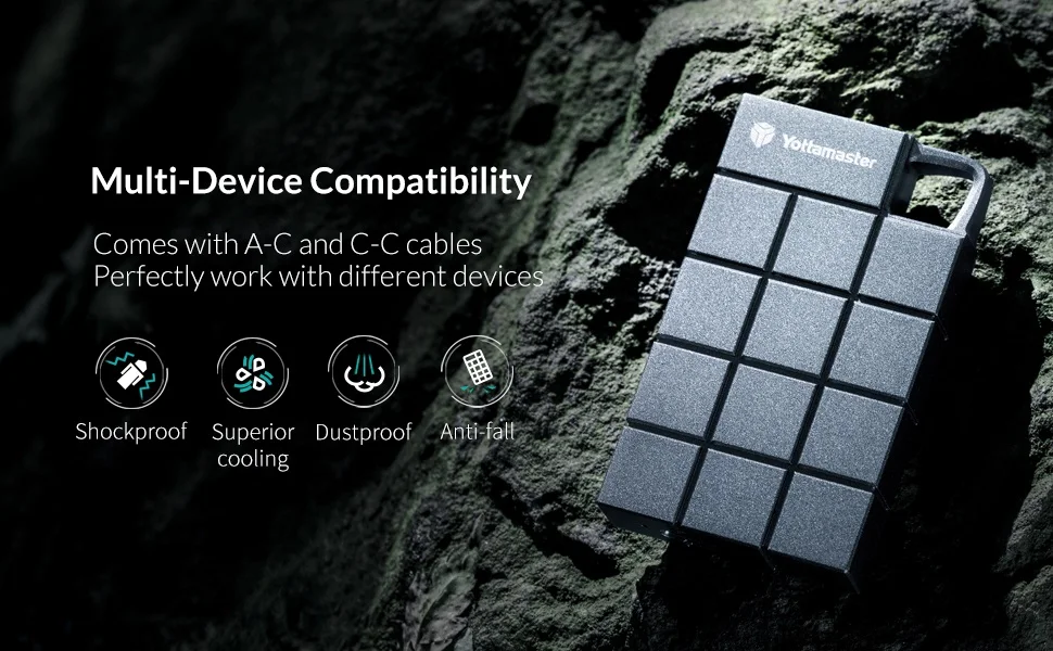 El SSD externo portátil Yottamaster tiene un diseño completamente de aluminio y un gran rendimiento de disipación de calor. Y su estructura unibody de aluminio sólido añade mayor protección, ofreciendo una mejor resistencia a los golpes, a prueba de polvo y anticaída. El diseño de cubo mágico moderno y único destaca la personalización; Los pulverizadores de superficie anodizados lo hacen cómodo de tocar.