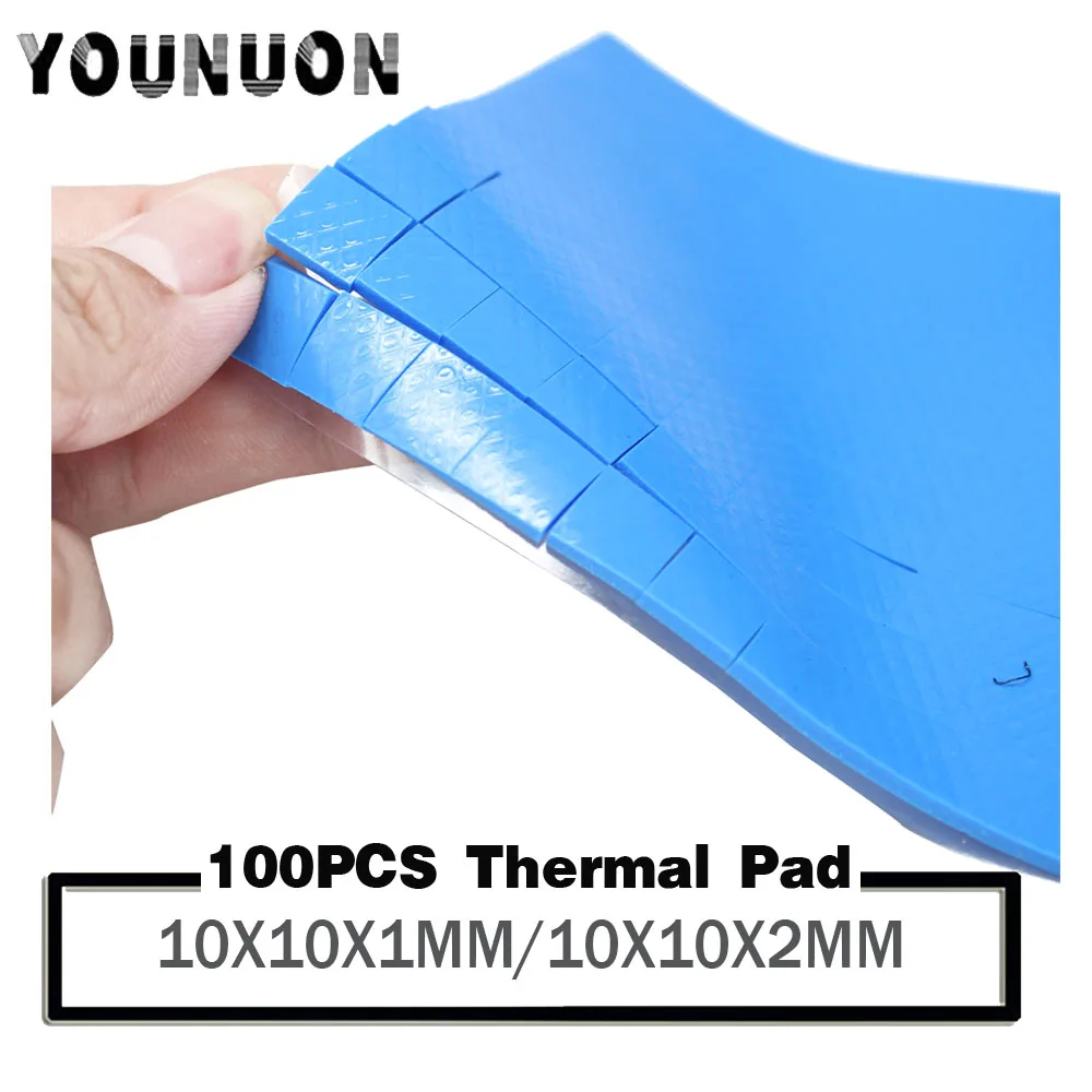Comprar YOUNUON-almohadilla térmica para disipador térmico de CPU, almohadilla de silicona conductora de refrigeración, 10mm x 10mm x 1mm, 10mm x 10mm x 2mm, 100 Uds.