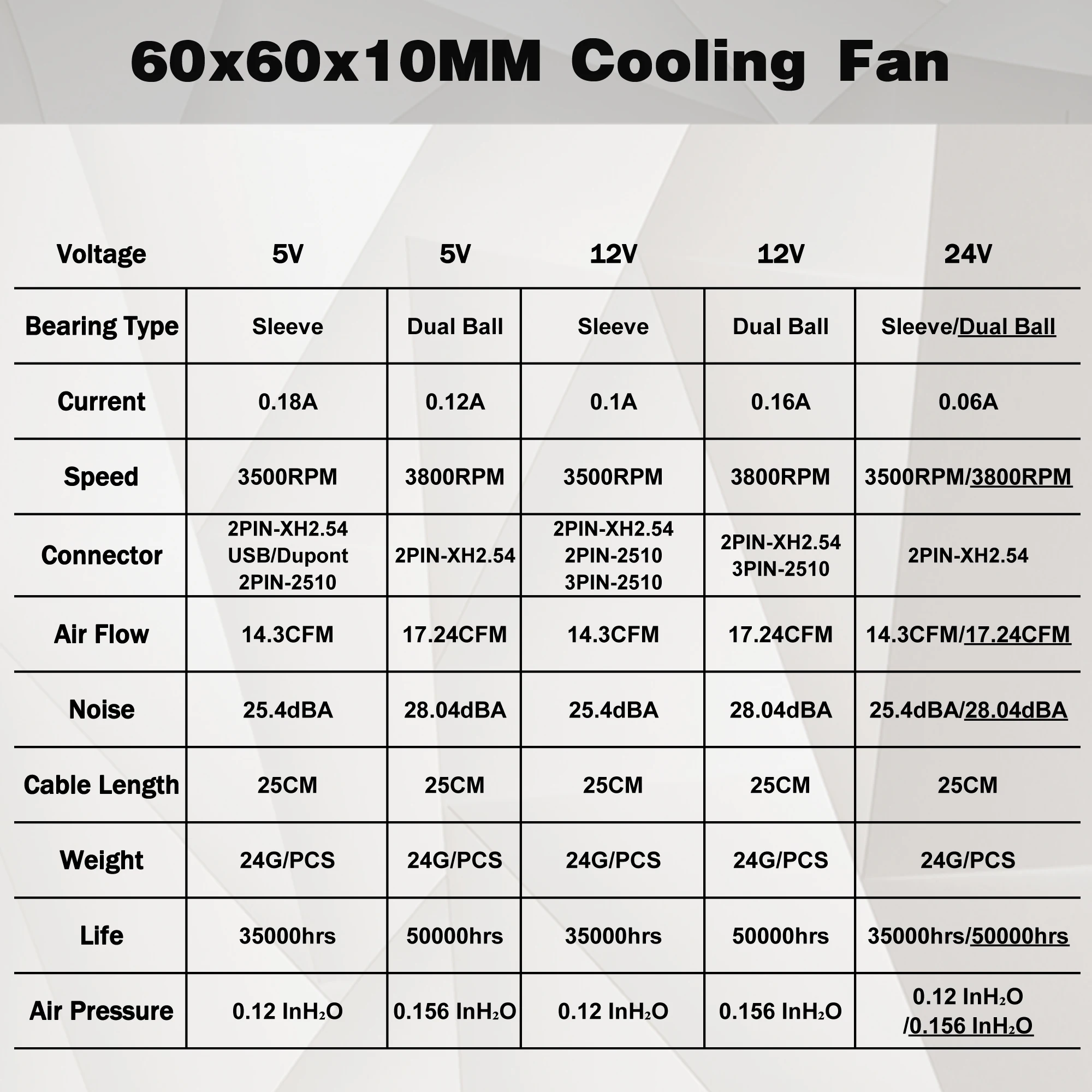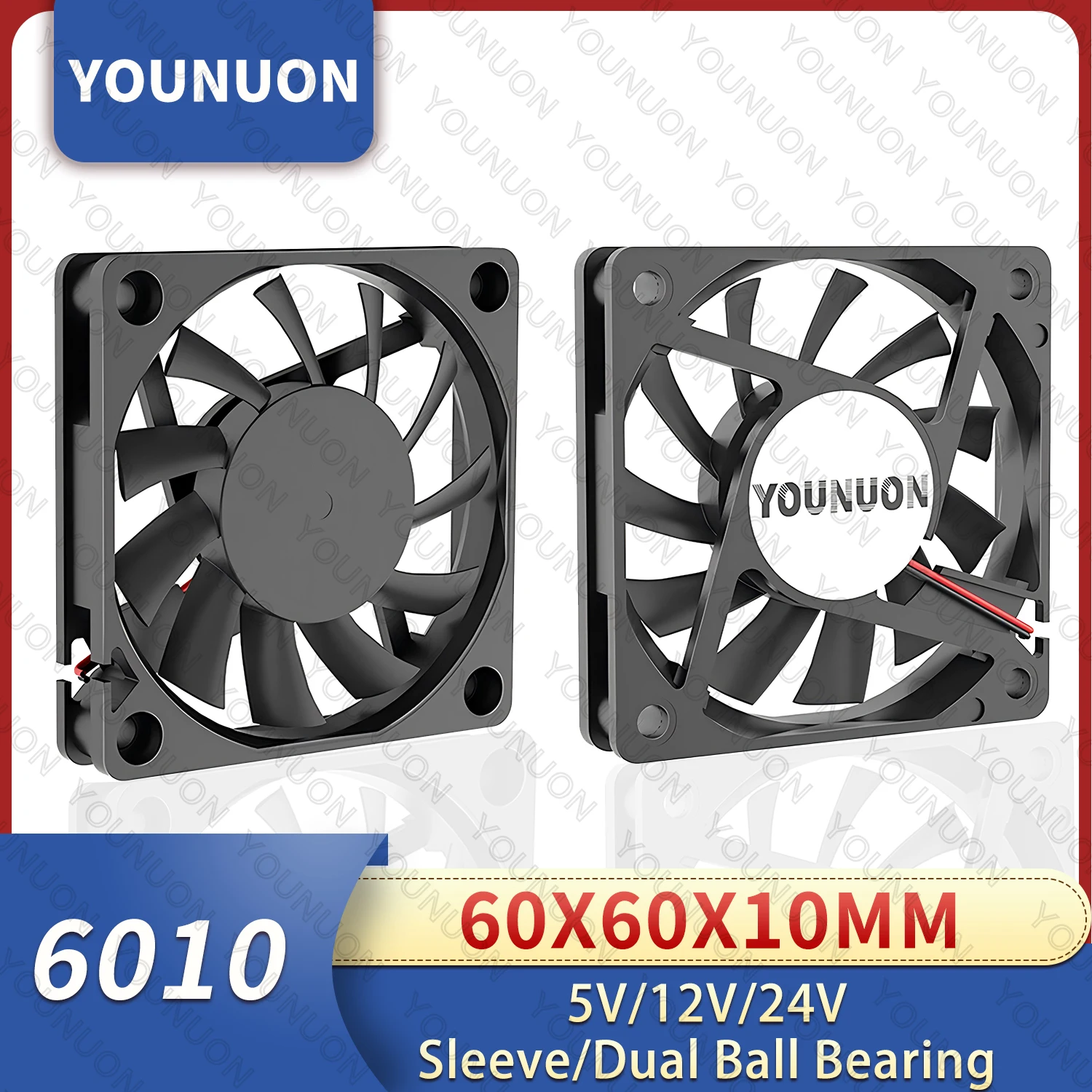 Comprar YOUNUON DC 5V 12V 24V 60mm ventilador 6010 DC ventilador 60x60x10mm 6cm ventilador enfriador ordenador PC ventilador CPU caja refrigeración ventilador con rodamiento de bolas