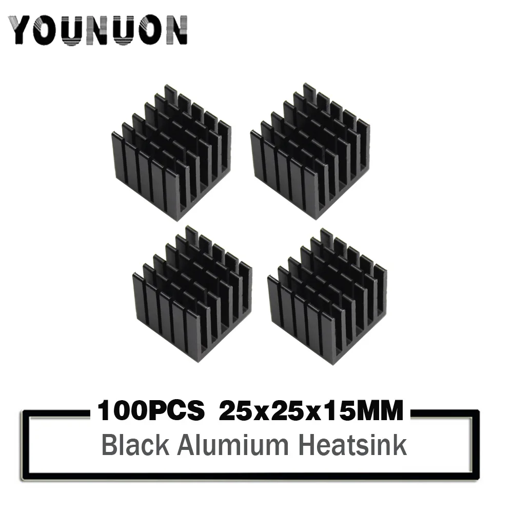 Comprar YOUNUON-disipador de calor de aluminio para CPU, disipador de calor para Chip GPU, VGA, RAM, IC, LED, refrigeración con cinta de 3M, color negro, 100 piezas, 25x25x15mm