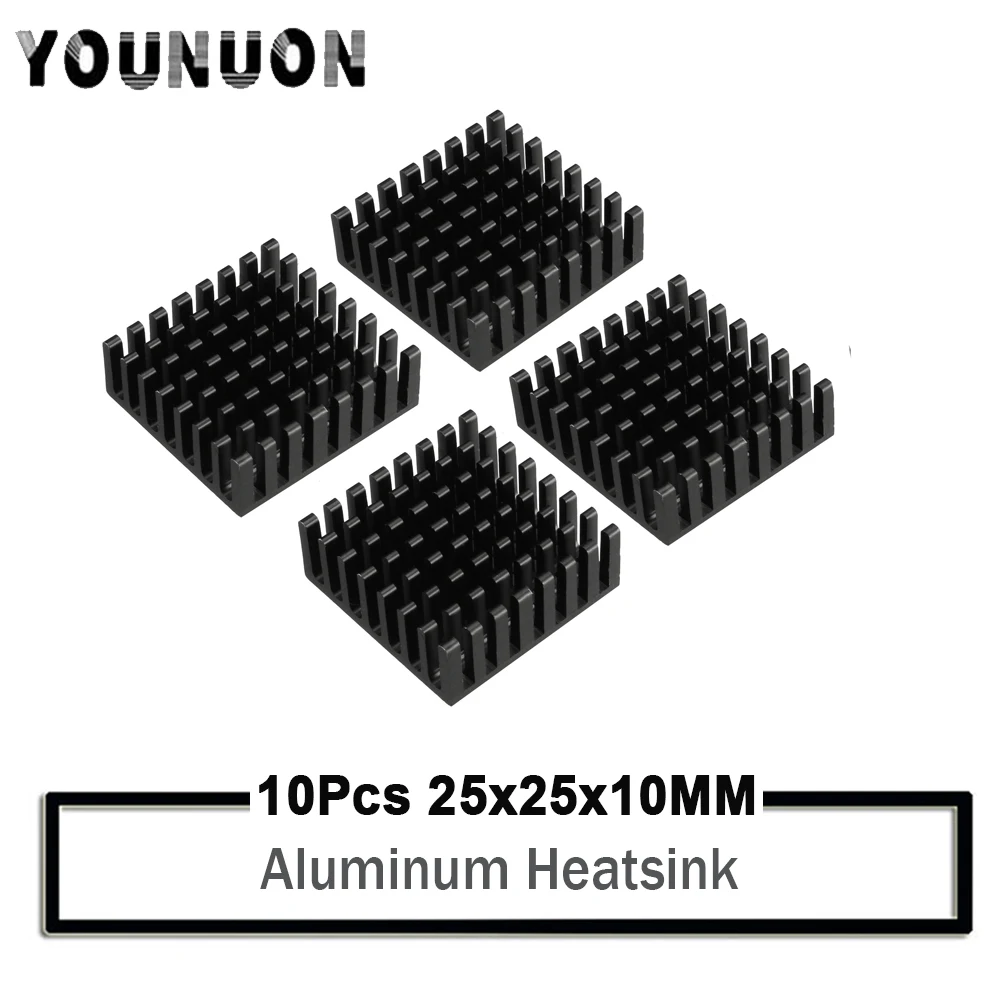Comprar YOUNUON-disipador de calor de aluminio para CPU, disipador de calor para Chip GPU, VGA, RAM, IC, LED, refrigeración con cinta de 3M, color negro, 10 piezas, 25x25x10mm