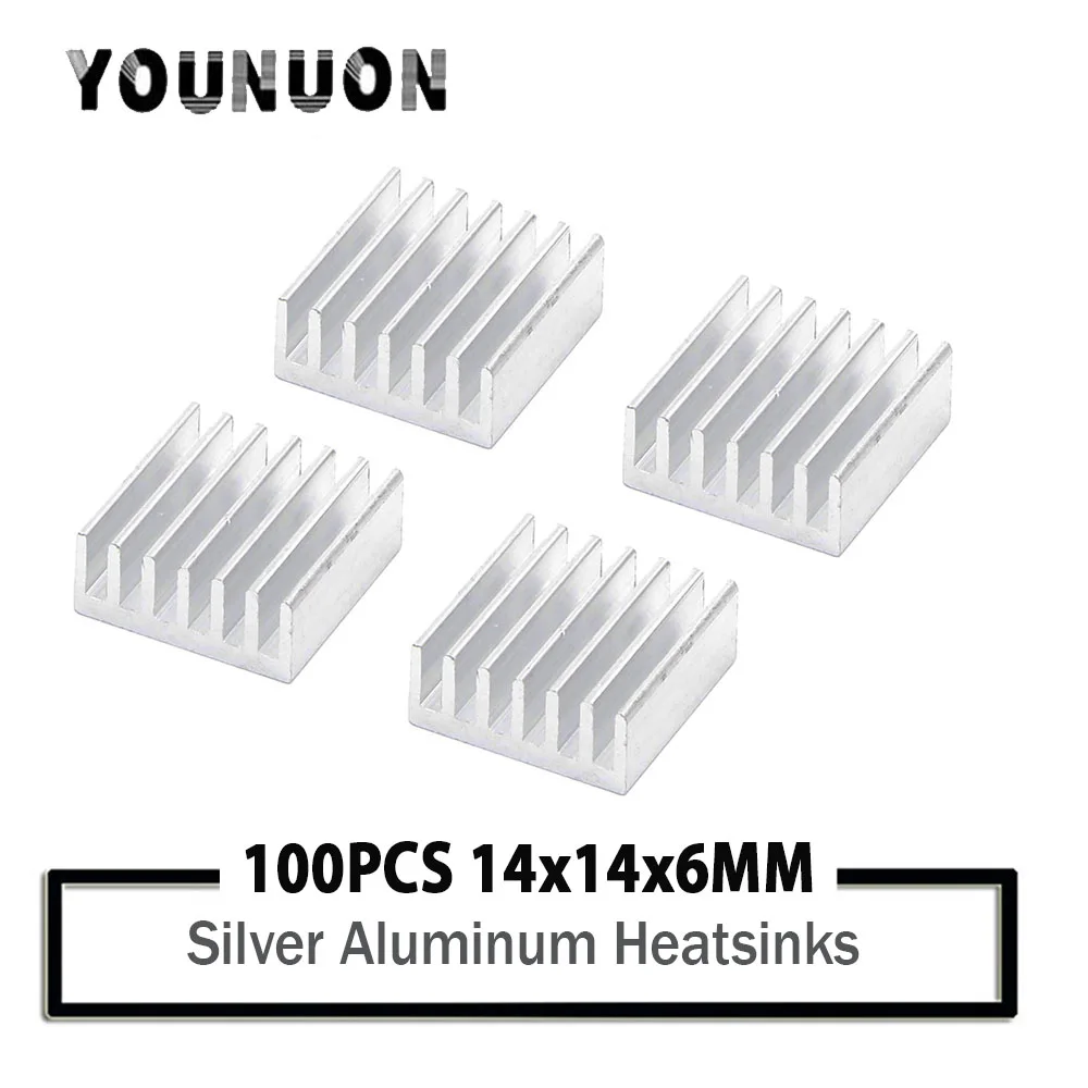 Comprar YOUNUON-disipador de calor de aluminio plateado, 100 piezas, 14x14x6mm, Chip de 14mm x 6mm, CPU, GPU, VGA, RAM, LED, IC, radiador con cinta de 3M