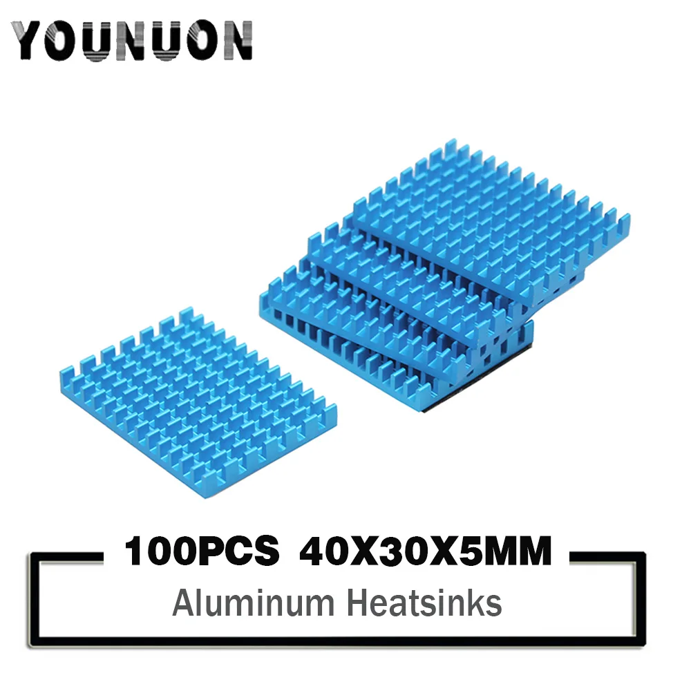 Comprar YOUNUON-disipador de calor de perfil de aluminio azul, chip IC CPU Router, Memoria PCB, placa electrónica, disipador térmico, 30x40x5mm, 100 piezas, 40x30x5mm