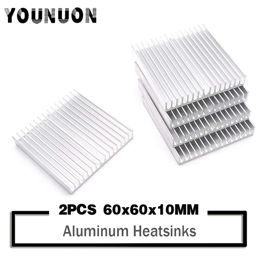 Comprar YOUNUON-disipador térmico de aluminio, disipador de calor de plata de 2 piezas, 60x60x10MM, IC, radiador, Transistor de potencia de refrigeración, 60x60x10mm, 60mm, 6cm
