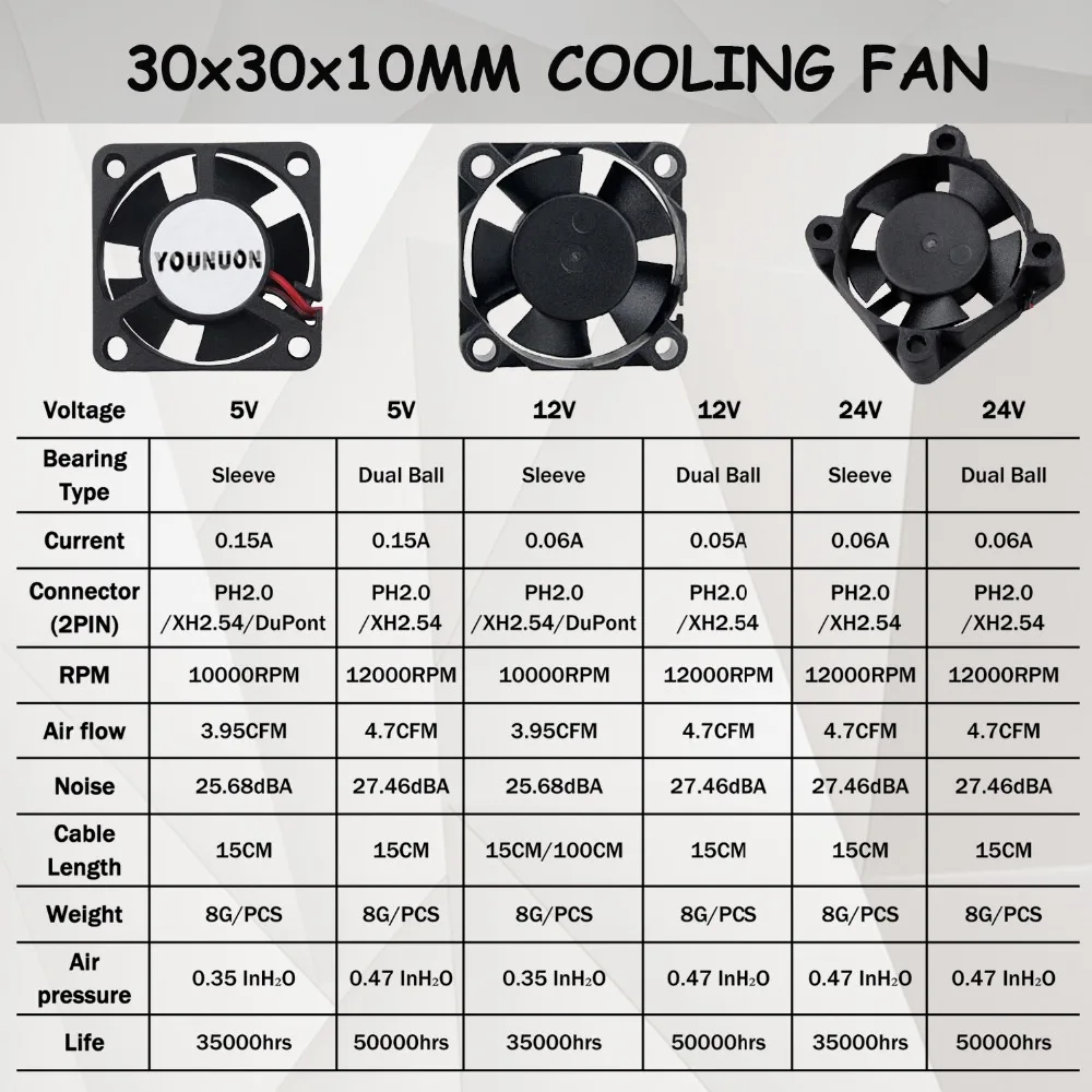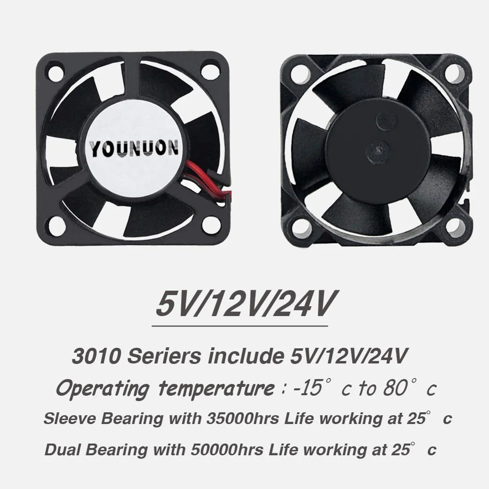 Comprar YOUNUON-Mini ventilador de refrigeración sin escobillas, 2 piezas, rodamiento de bolas Dual 24V DC 12V 5V 3cm 30mm 30x30x10mm 3010