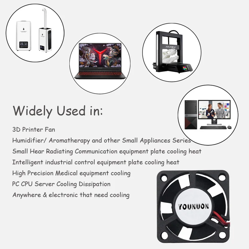 Ampliamente utilizado en: ventilador de impresora 3DSerie de humidificadores/aromaterapia y otros electrodomésticos pequeños