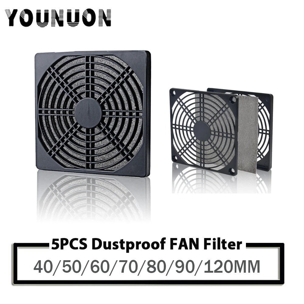 Comprar YOUNUON-Protector de plástico a prueba de polvo para ventilador de PC, cubierta protectora para parrilla, 40mm, 50mm, 60mm, 80mm, 90mm, 120mm, 5 unidades