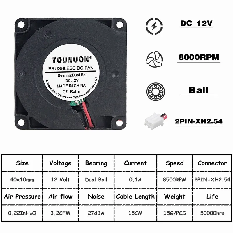Comprar YOUNUON-ventilador de impresora 3D, ventilador de refrigeración de rodamiento de bolas, 40mm, 4010 Turbo, 12V, 40mm x 40mm x 10mm, 70 Uds.