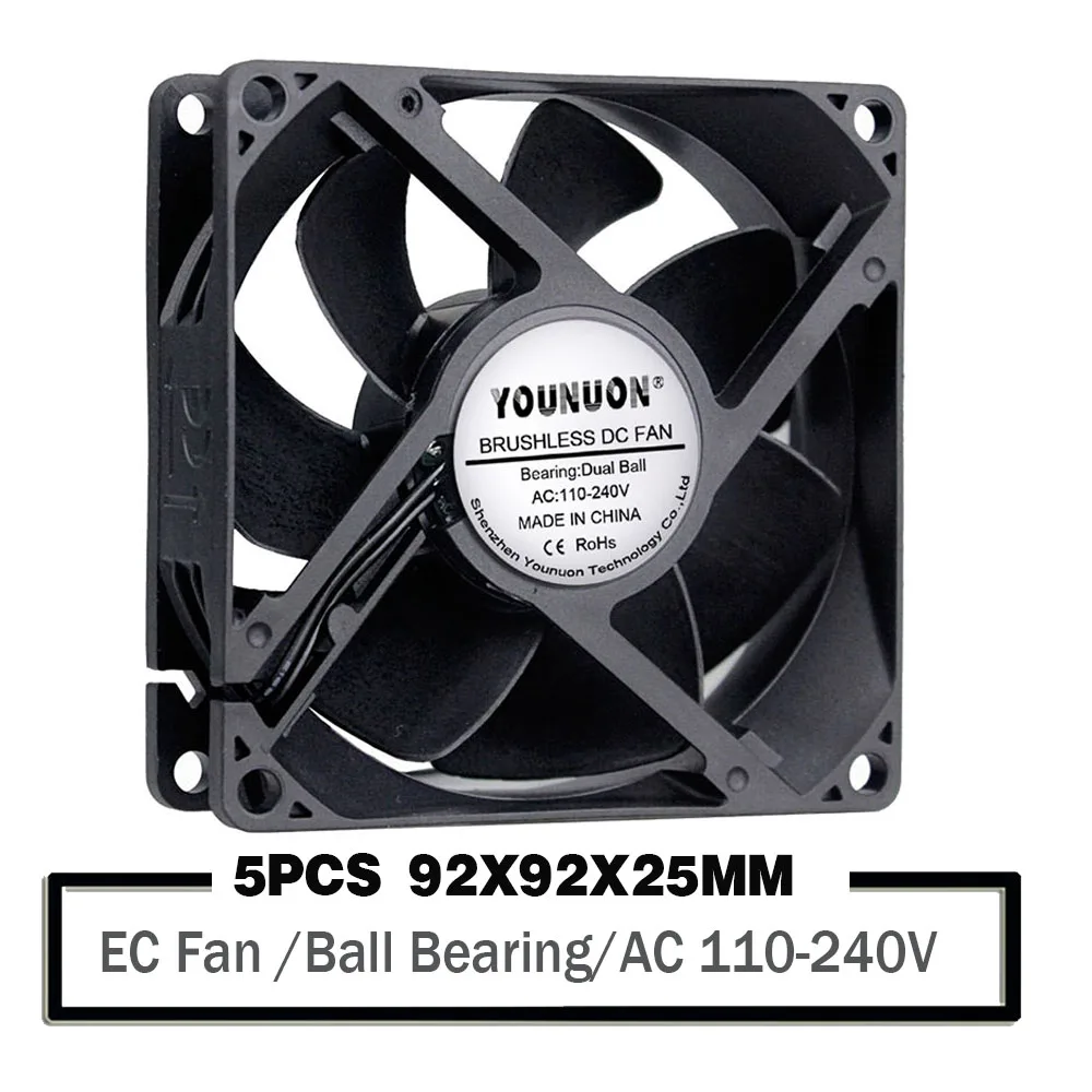 Comprar YOUNUON-ventilador de refrigeración EC 9225, Bola de 92x92x25mm, sin escobillas, CA 110V, 120V, 220V, 240V, Axial, 5 uds.