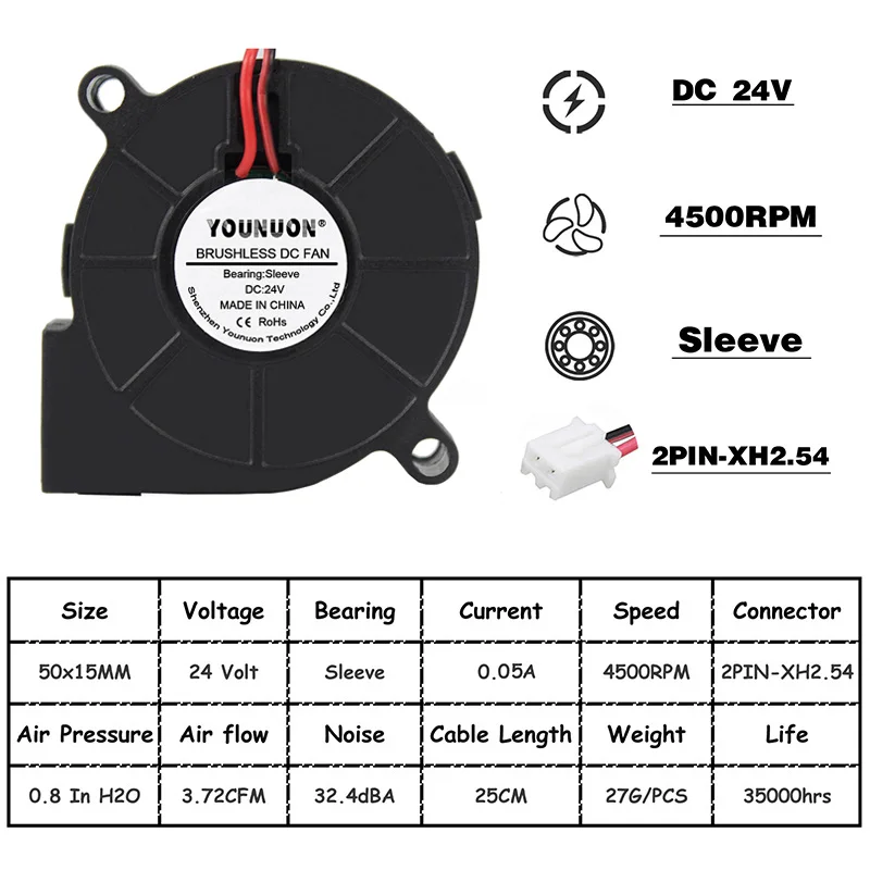 Comprar YOUNUON-ventilador de refrigeración sin escobillas para ordenador, soplador Turbo de 5mm, CC de 24V, 50mm, 5015, 50x50x1, para PC, 50 Uds.