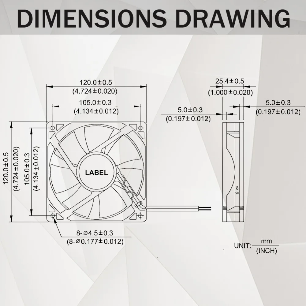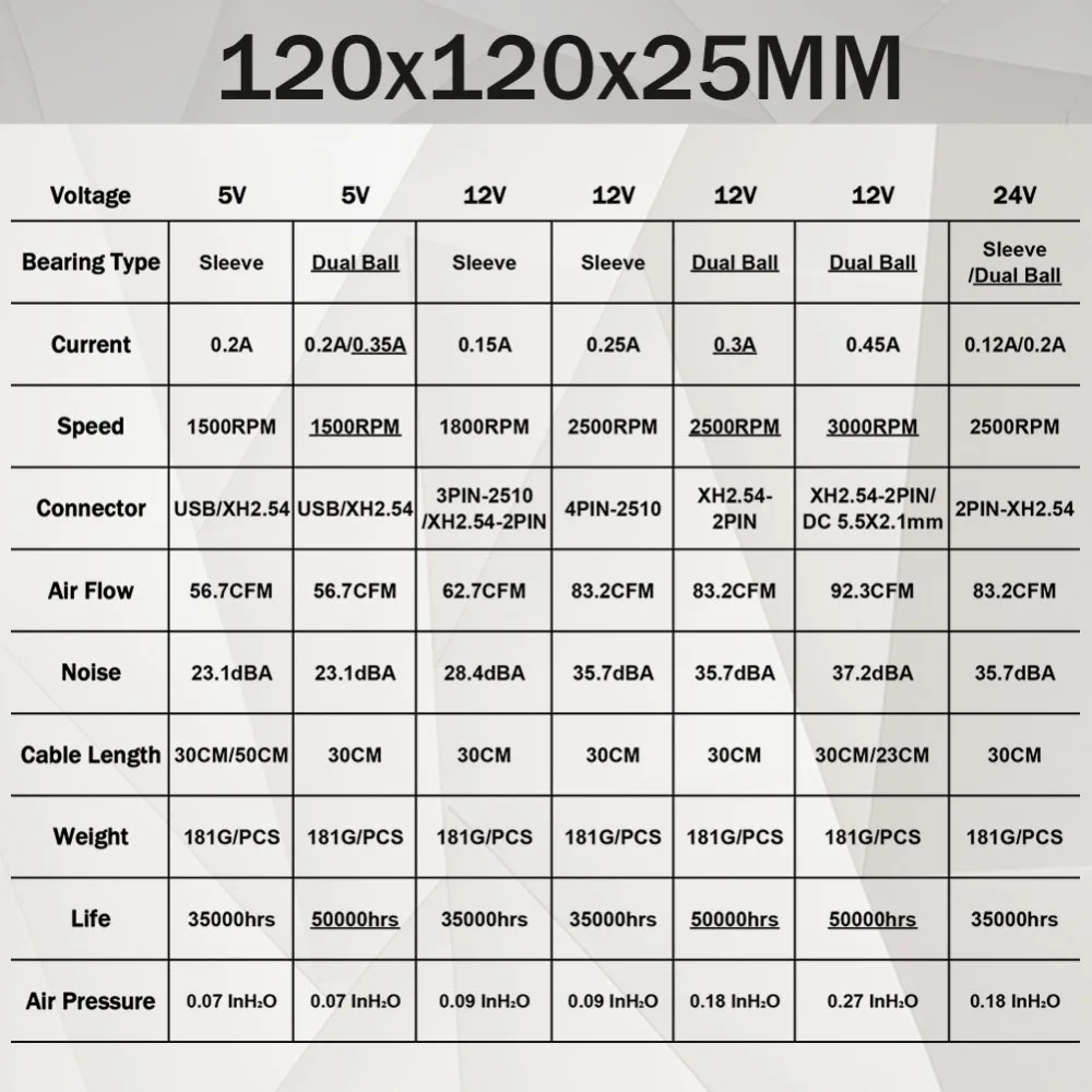 120x120x25MM DC 5V/12V/24V/48V/AC 110V-240V Ventilador de refrigeración hidráulico/con rodamiento de bolas