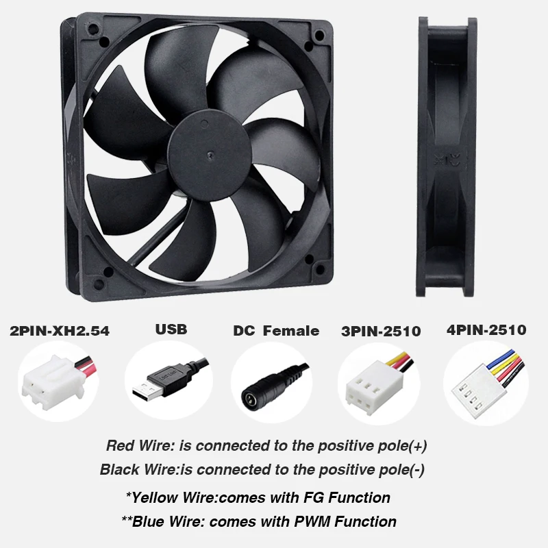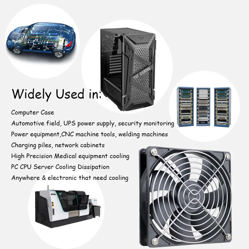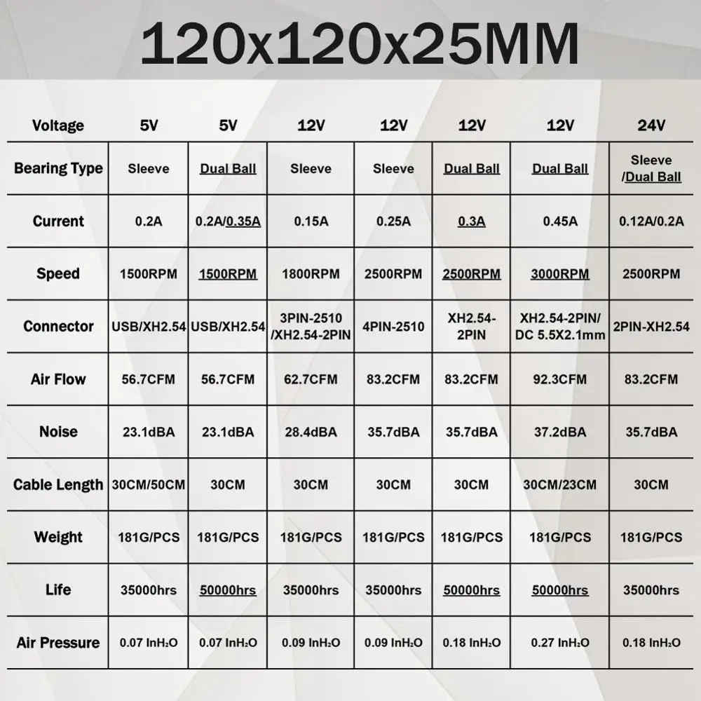 120x120x25MM DC 5V/12V/24V/48V/AC 110V-240V Ventilador de refrigeración hidráulico/con rodamiento de bolas