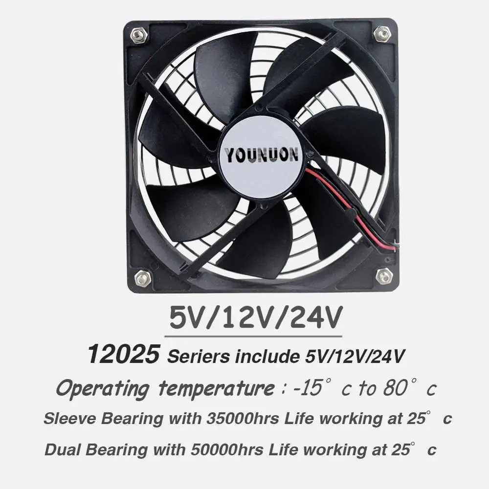 Comprar YOUNUON-ventilador de refrigeración sin escobillas para PC, funda de ordenador portátil, 5V, 12V, 24V, 120mm, 120x120x25mm, CC