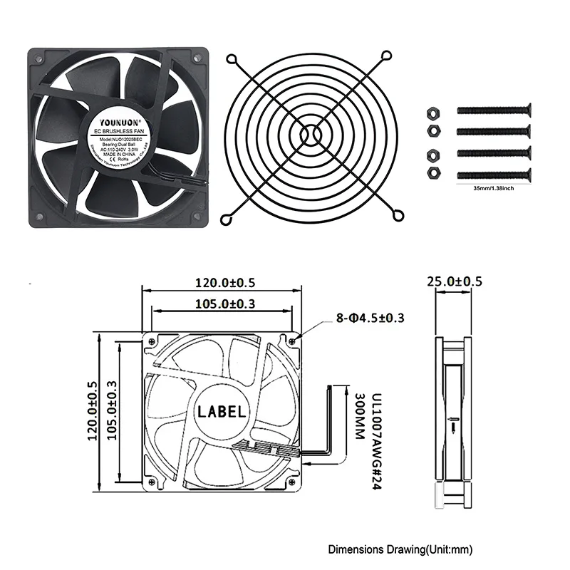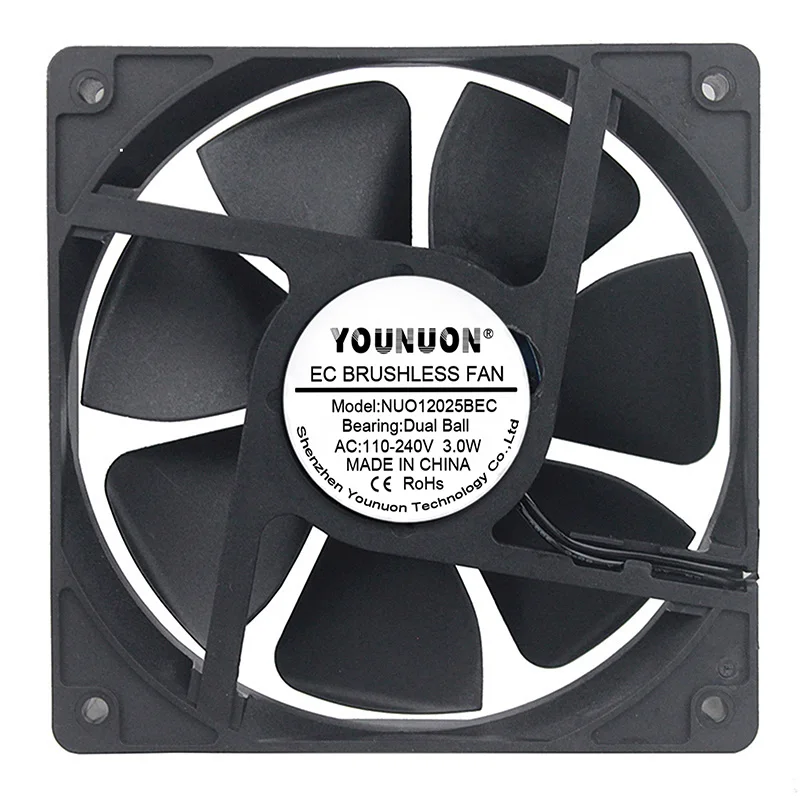 Comprar YOUNUON-ventilador sin escobillas de doble bola, 120mm, 12025 EC, CA 110V, 115V, 120V, 220V, 240V, Axial, 120x120x25mm, viene con pantallas/parrilla