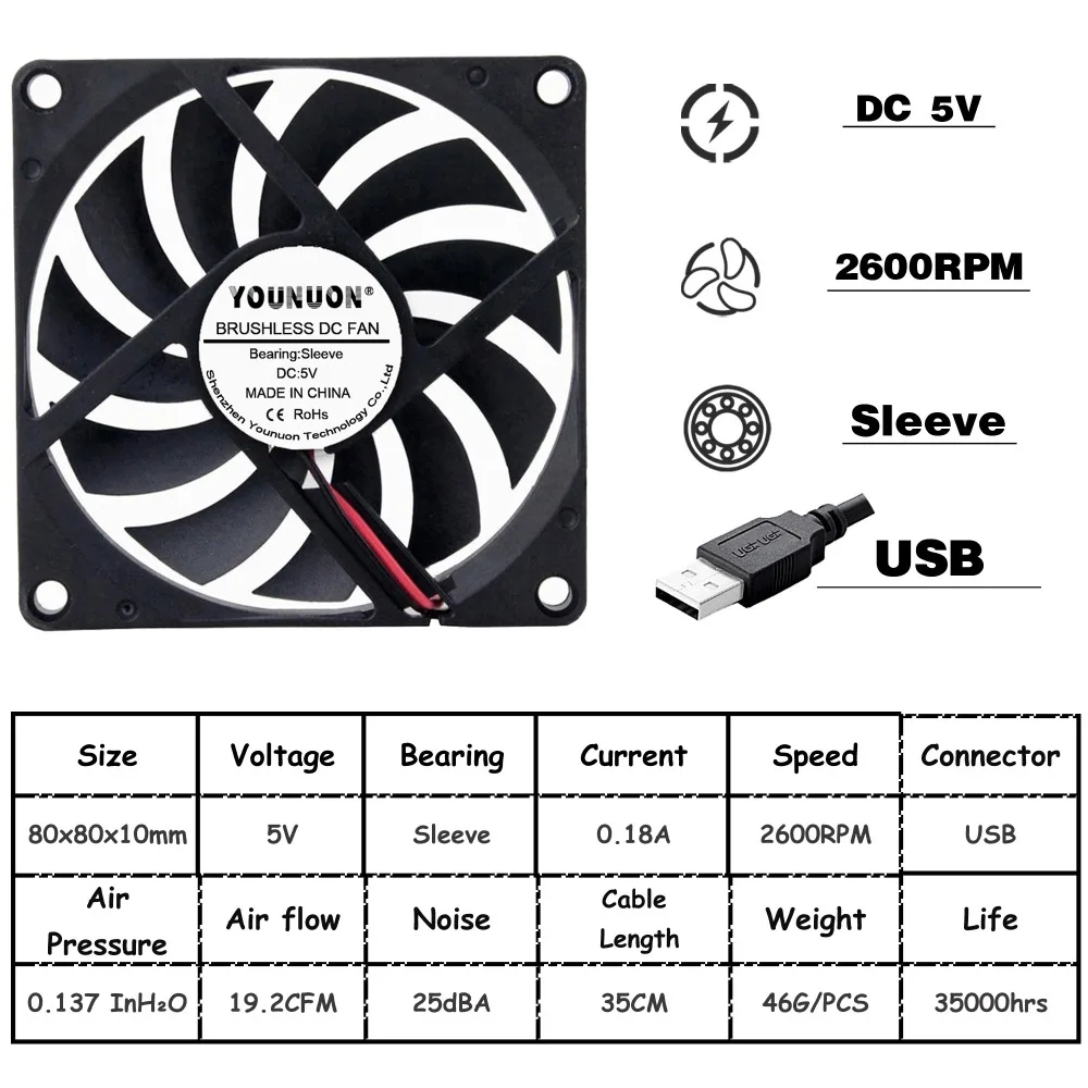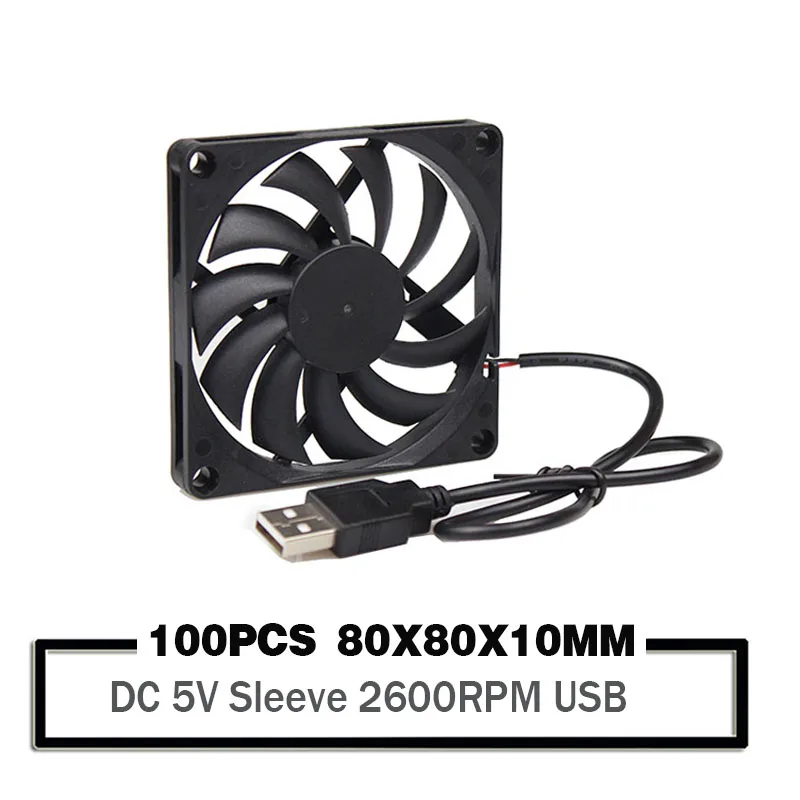 Comprar YOUNUON-ventilador USB de 80mm y 5V para ordenador, Enfriador de ordenador de escritorio, salida de ventilación para carcasa de PC, fuente de alimentación, 100 unidades, 8010x80x10mm