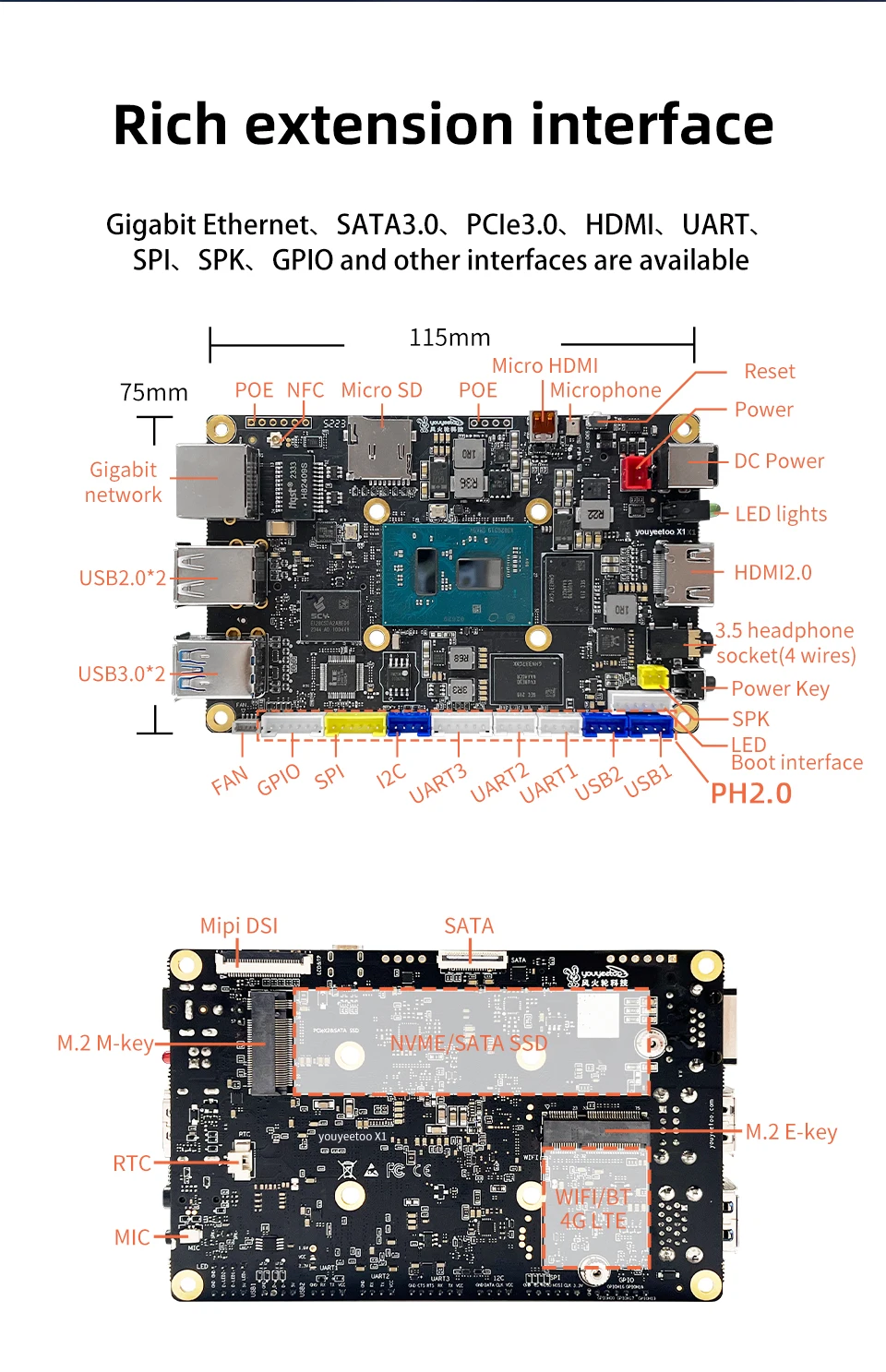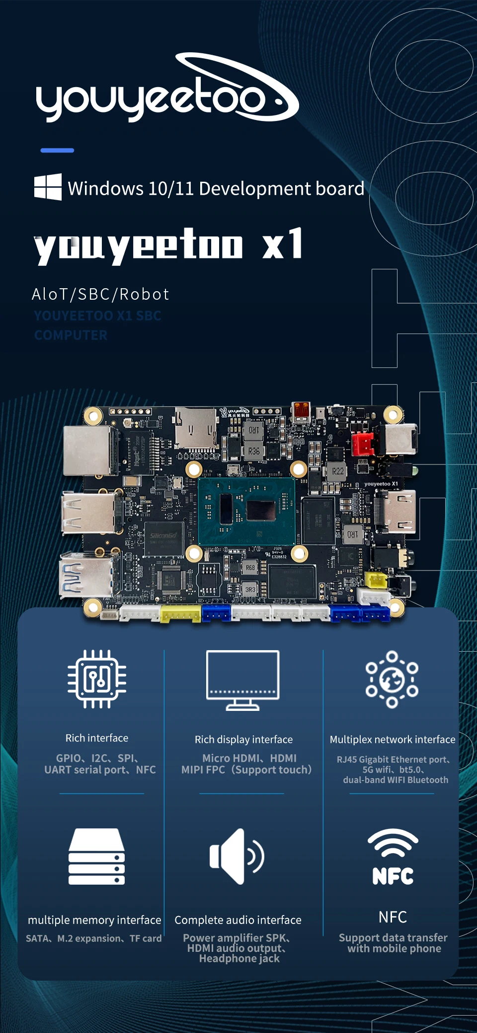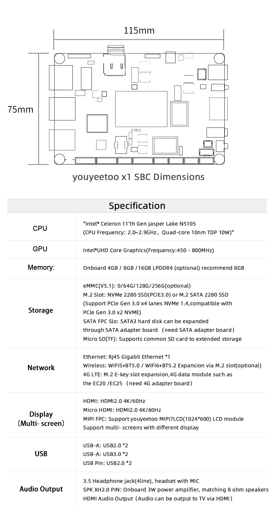 Comprar Youyeetoo X1 SBC Intel 11. a generación JasperLake N5105 Mini PC X86 Placa de desarrollo Windows 10, Win 11 Pro, Ubuntu compatible con NFC, WIFI 6
