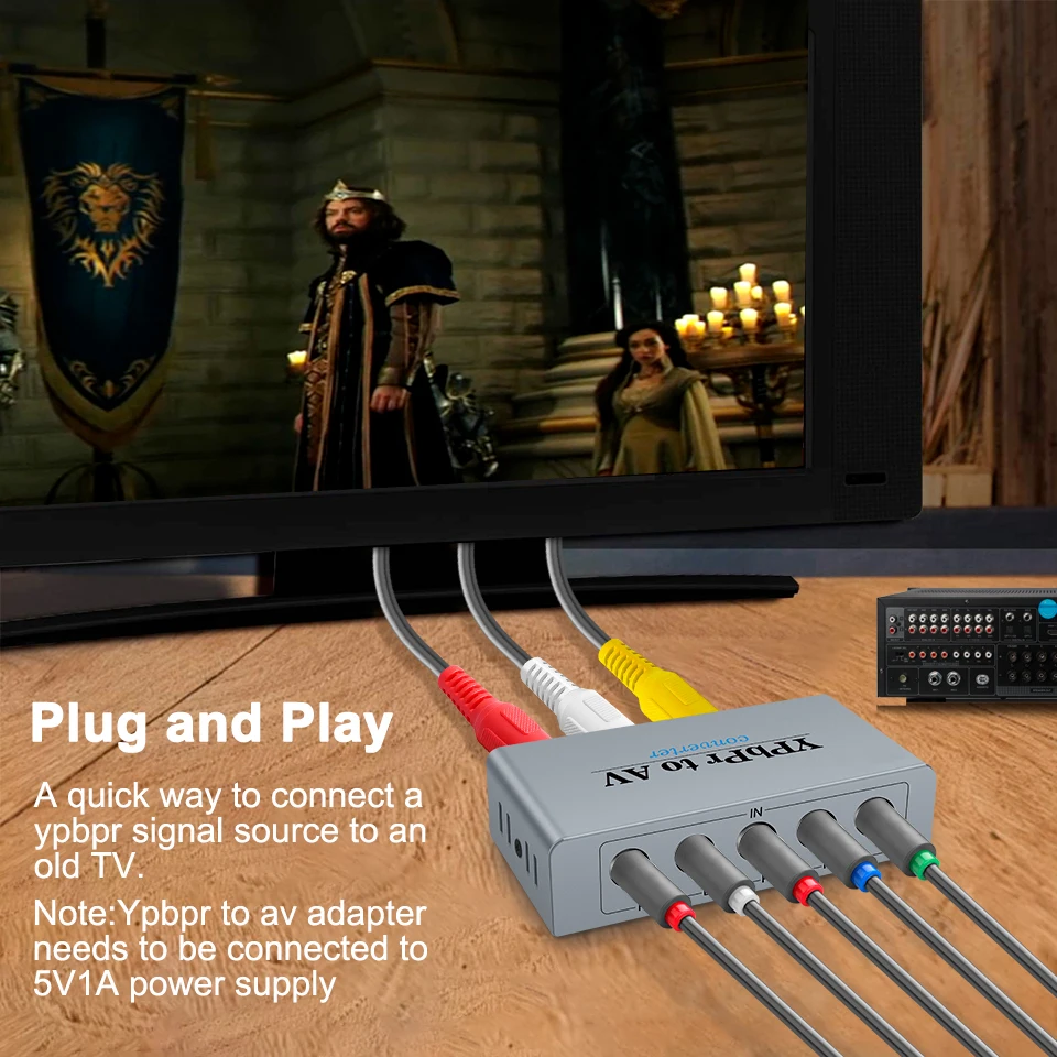 El convertidor de vídeo por componentes (YPbPr) a AV le permite conectar su antiguo REPRODUCTOR DE DVD YPbPr o consola de juegos/Xbox 360 a su nueva pantalla AV. Admite la resolución de vídeo más alta hasta 1080P (máx.). Fácil de instalar y diseño simple. Plug and play, no se necesita software.