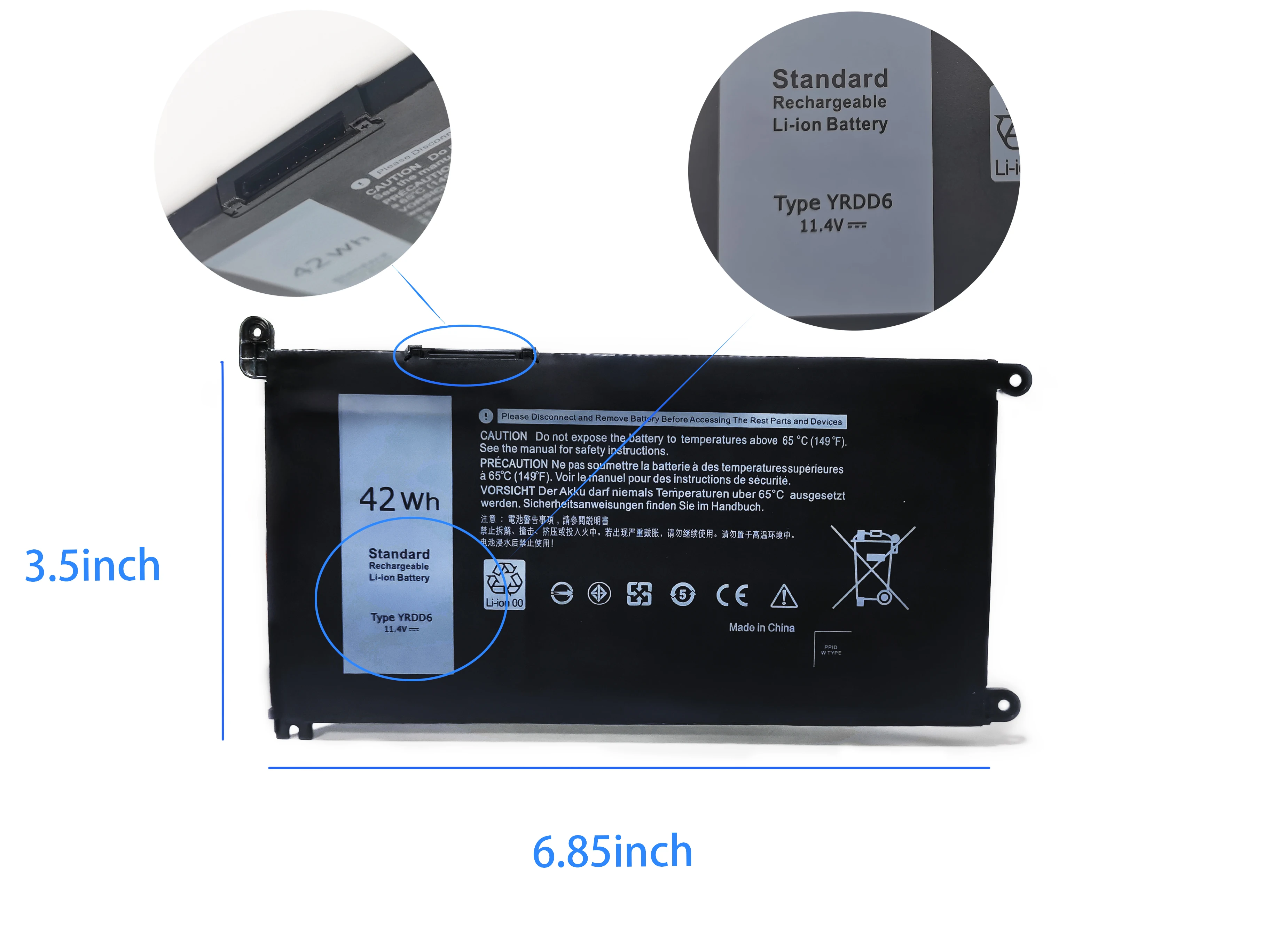 Comprar YRDD6-Batería de iones de litio para ordenador portátil, pila de 11,4 V, 42Wh, para d-ell i-nspiron5480, 5482, 5485, 5584, 5488, B07DFK12MV, FW8KR, RRJDX, 9W9MX