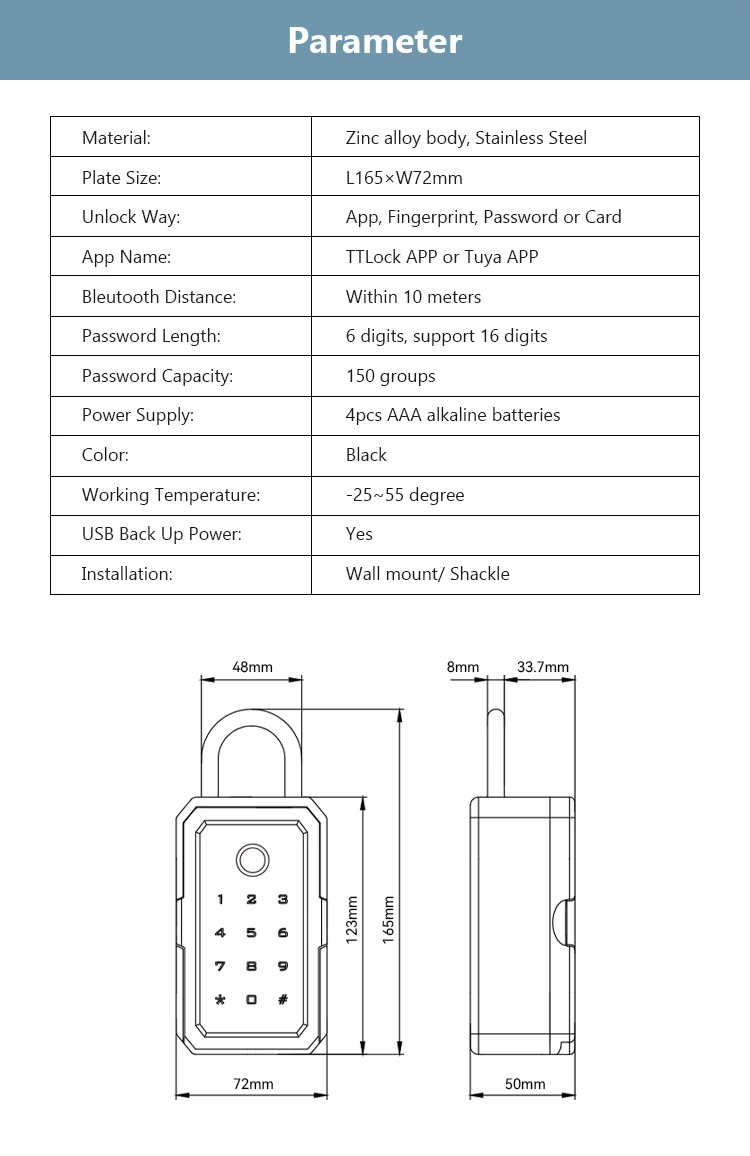 YRHAND TTlock Wifi Cajas DE SEGURIDAD contraseña Smart Fingerprint Digital Smart Lock Tuya Electronic Portable Lock Boxes