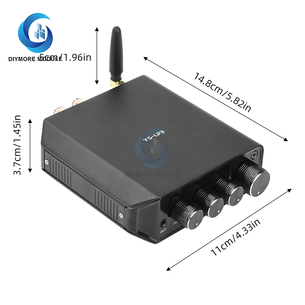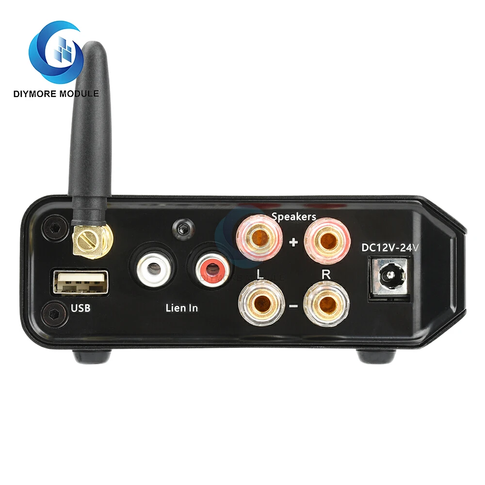 Características:1.Carcasa de aleación de zinc, tecnología de alta gama y antioxidante resistente a la corrosión; Tecnología de amplificador Hi-Fi de alta fidelidad, doble canal 2.0, calidad de sonido clara, fuerte sensación de espacio, experiencia inmersiva2. Chip amplificador clase D de alto rendimiento: chip TPA3116D2, frecuencia de modulación de hasta 1,2 MHZ, para garantizar la transmisión precisa de señales de audio3.Equipado con chip BT V5.4 para estabilizar la transmisión de la señal, la distancia de conexión puede ser de hasta 15 metros; diseño de circuito que utiliza dos amplificadores operacionales duales NR55324.Función de protección cuádruple: protección de circuito de detección de sobretensión, subtensión, sobrecalentamiento, CC; 3 modos de entrada: BT, disco U, interruptor AUX a voluntad5.Ajuste de volumen independiente, con perilla de control de agudos, medios y graves; Puerto de entrada RCA, para lograr separación de transmisión de audio y vídeo.Parámetro:
