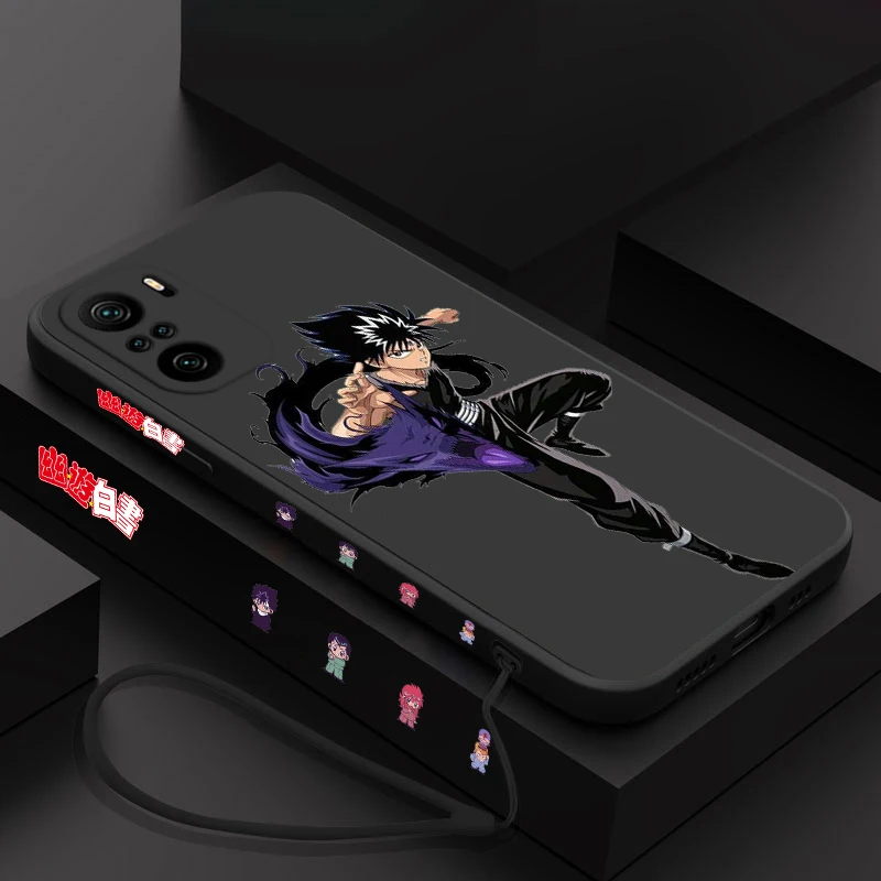 Yu Hakusho Hiei funda de teléfono con cuerda izquierda líquida para Xiaomi Redmi Note 13, 12, 12Pro, 11S, 11T, 10S, 10 Pro Plus, 5G