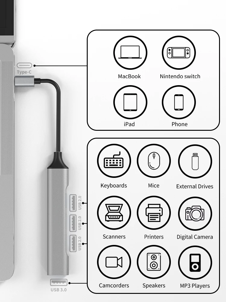 Compatible con casi todos los dispositivos tipo C / USB 3,0. Y Windows, Mac, Chromebook OS y otros sistemas. Compatible con OTG.