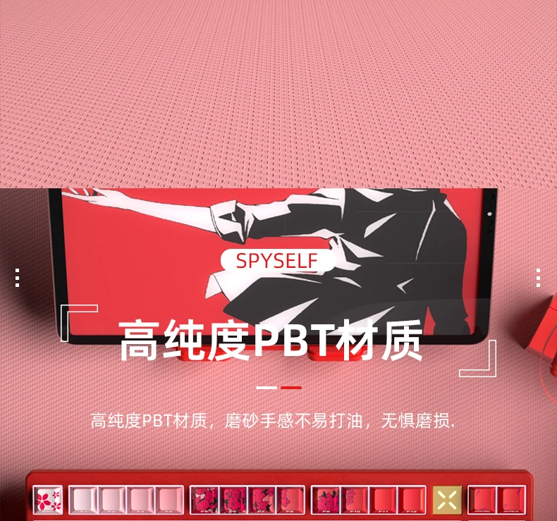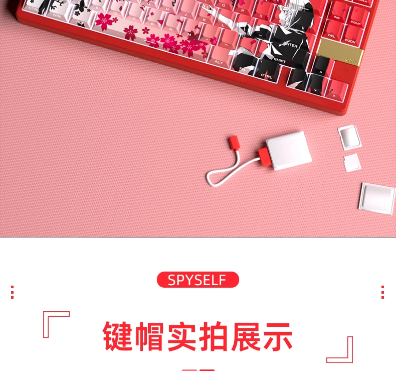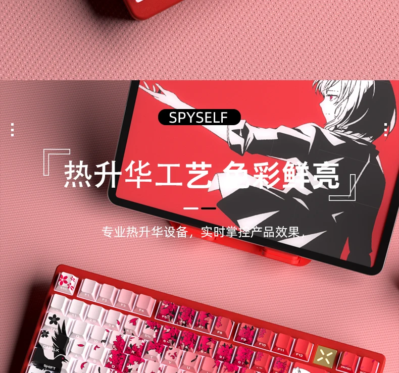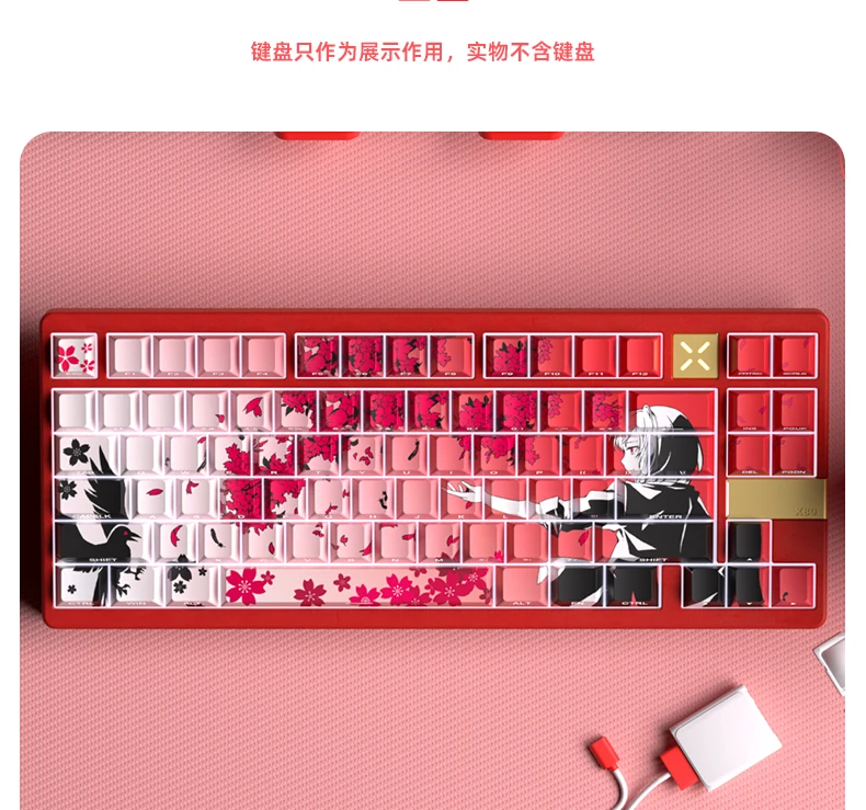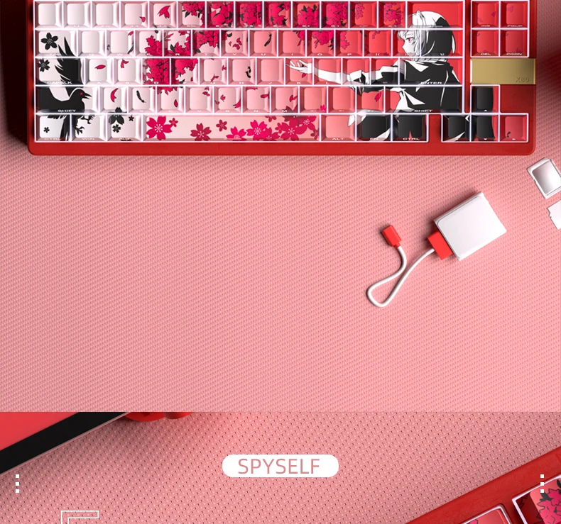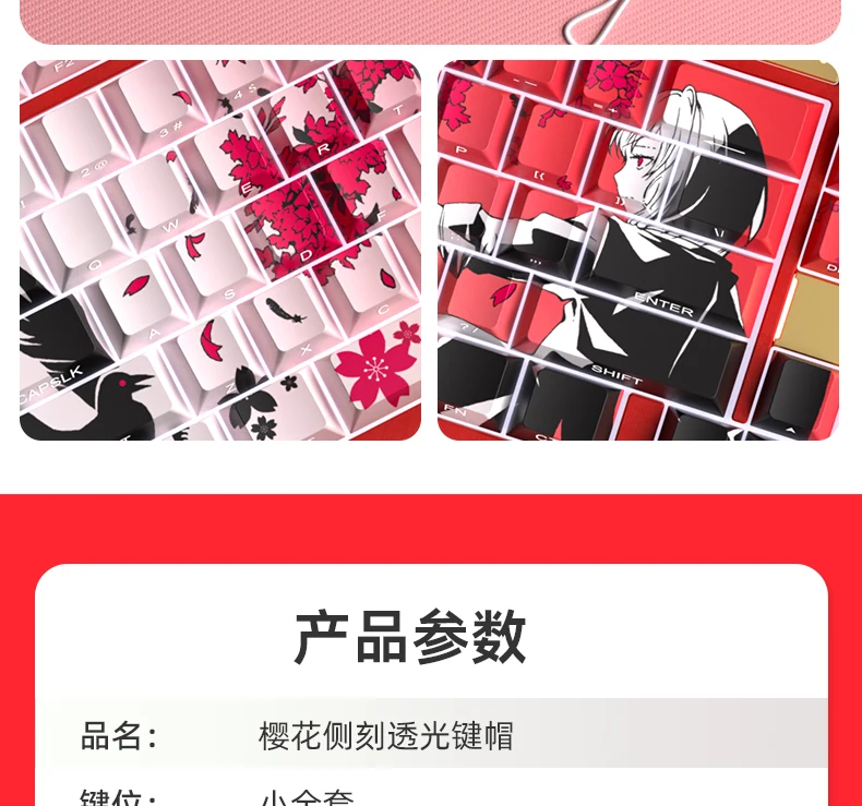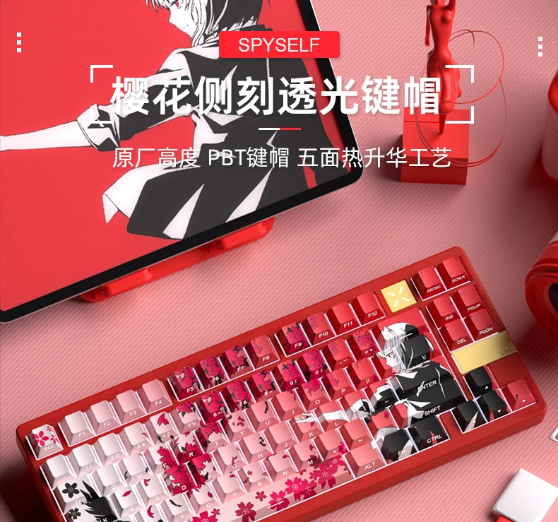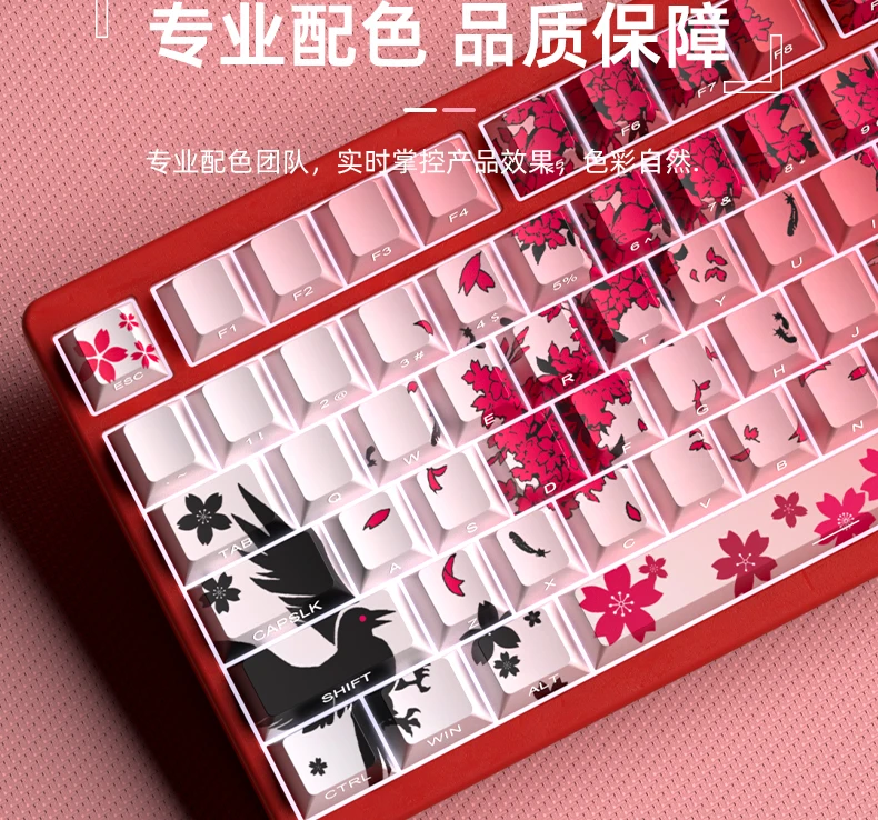 Yukiaim Keycaps Custom PBT Cherry Profile Side Carving Keycap Cute Sakura Cartoon Anime Point Key Cap for Gaming Keyboard Gift