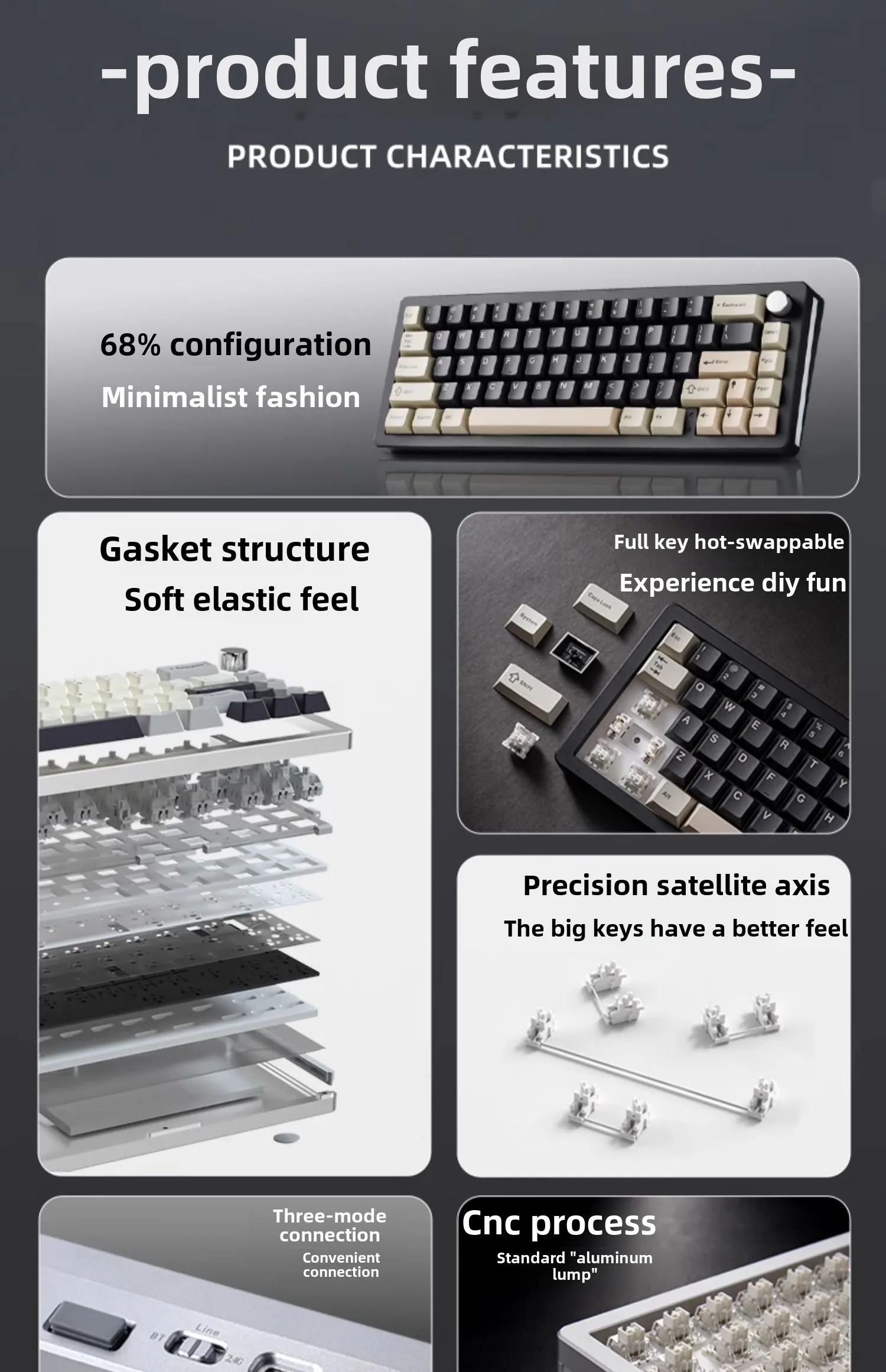 Comprar YUNZII AL66 Teclado mecánico inalámbrico con cable Bluetooth triodo 2,4G intercambio en caliente Pc e-sports Gamer accesorios regalos