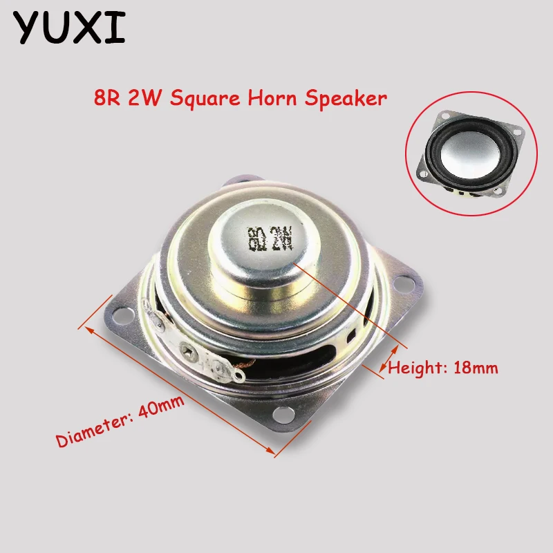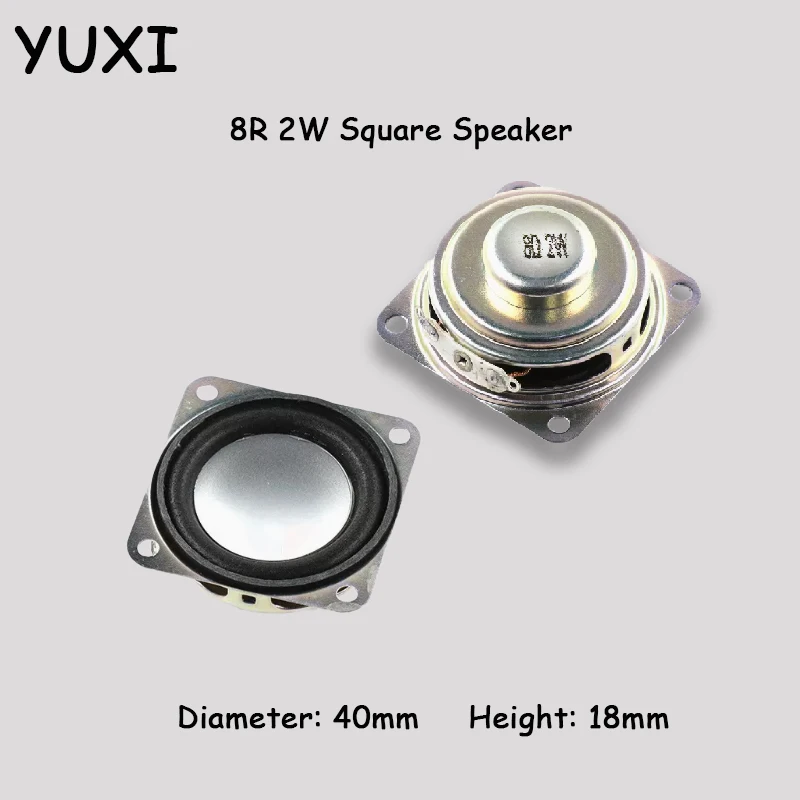 Altavoz YUXI de rango completo cuadrado de 2 piezas para 8R 2W de diámetro 40mm de altura 18mm para accesorios de Audio de altavoz