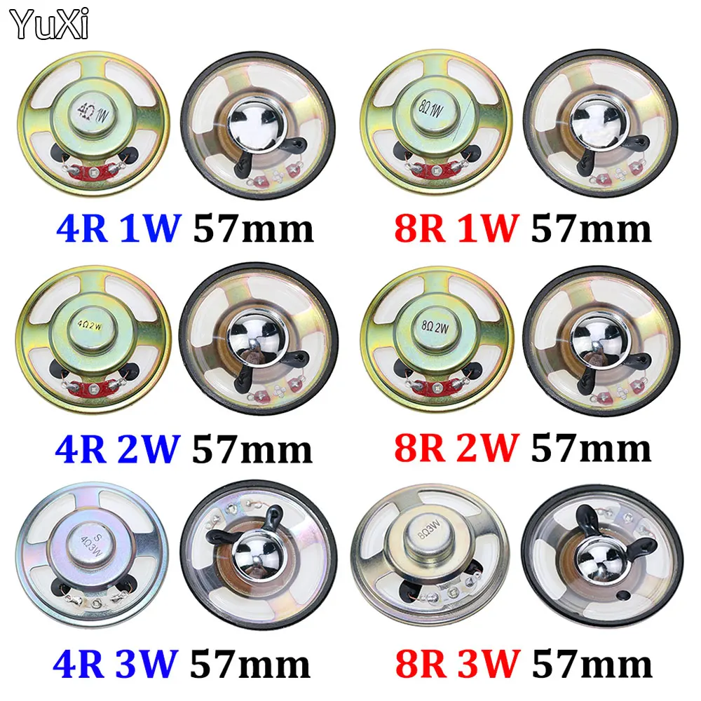 Comprar YUXI-altavoz impermeable, 2 piezas, 4 Ohm, 8 ohmios, 1/2/3 vatios, 4R, 8R, 1W, 2W, 3W, diámetro de 57MM, 5,7 CM