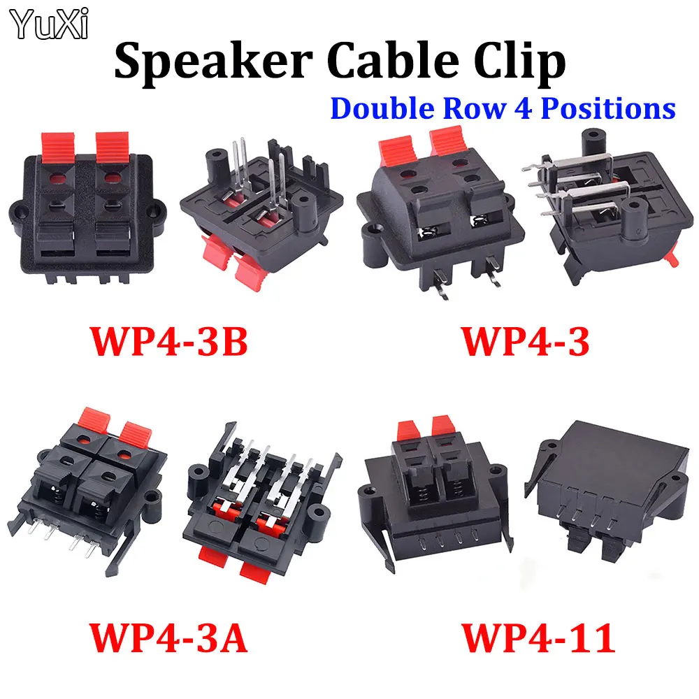 Comprar YUXI-Clip de Cable de doble fila, 1 piezas, 4 posiciones, tipo empuje, Panel de terminales de altavoz, Base de cableado de resorte, Conector de enchufe