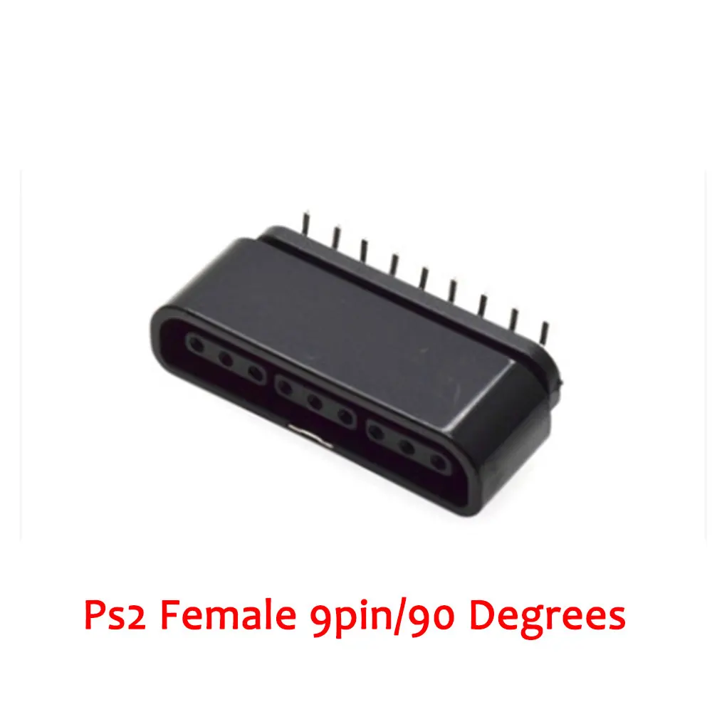 YUXI 1PCS Black 9 Pin 90/180 Degrees Female Connector Game Controller Socket Slot for PS2 Console for playstation 2 Accessory