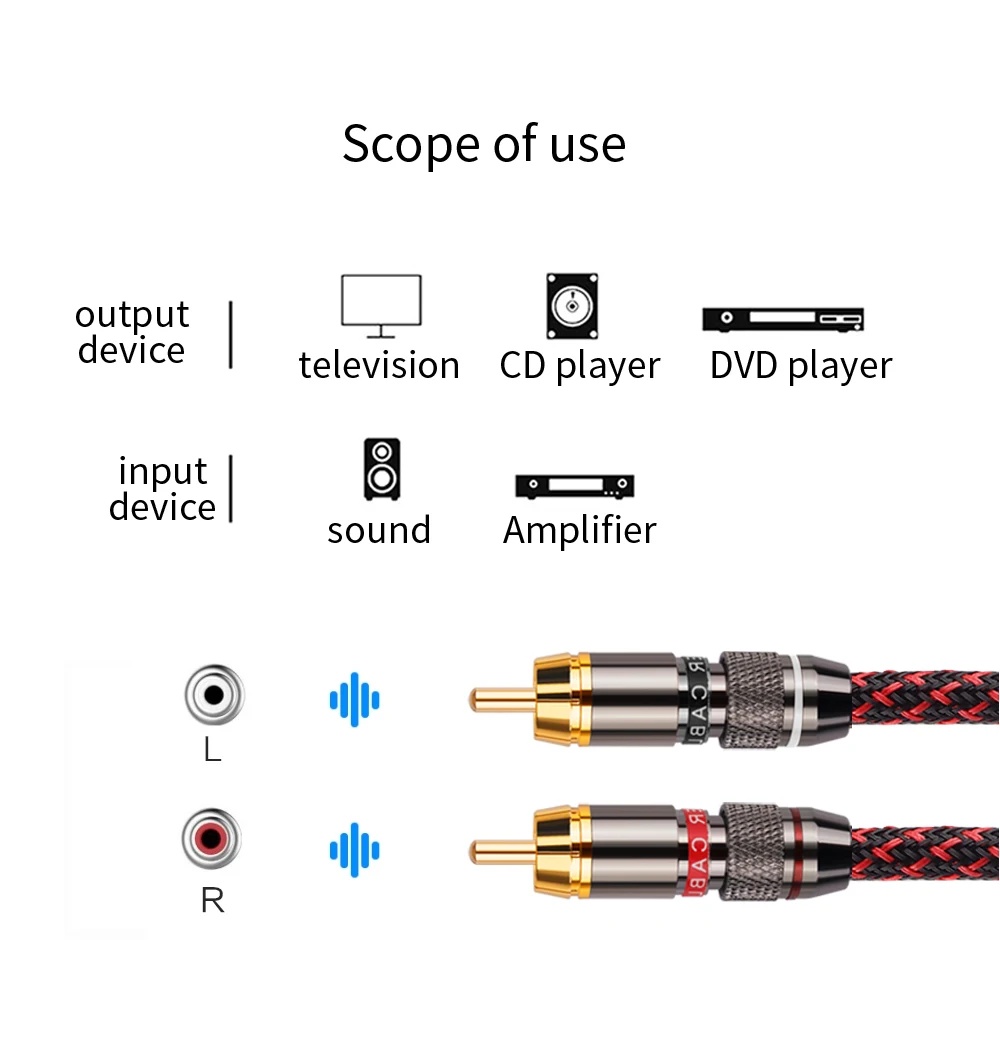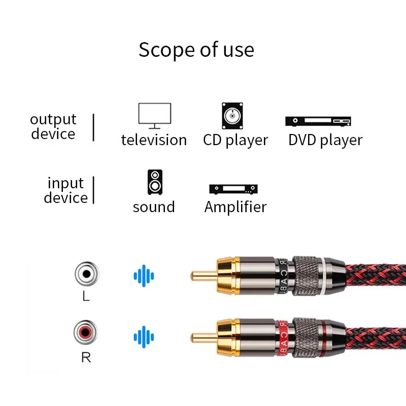 Comprar YYTCG 1 par de cables de Audio RCA 2 RCA a 2 Cables de interconexión RCA estéreo HIFI 4N OFC macho a macho para amplificador DAC TV Audio de coche