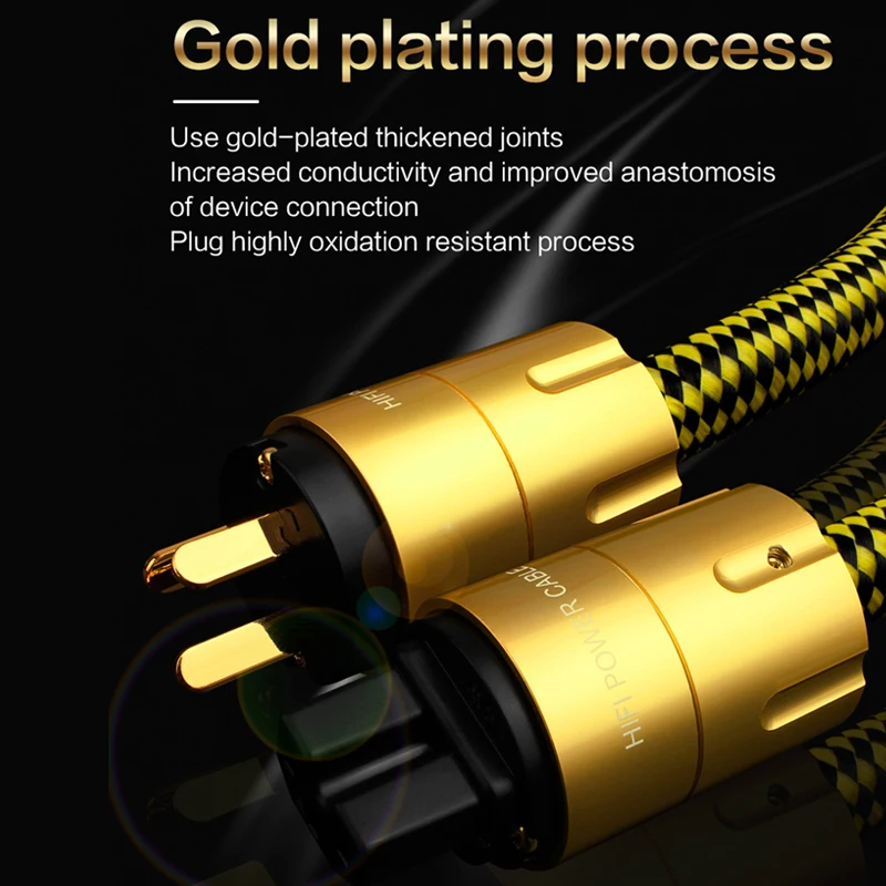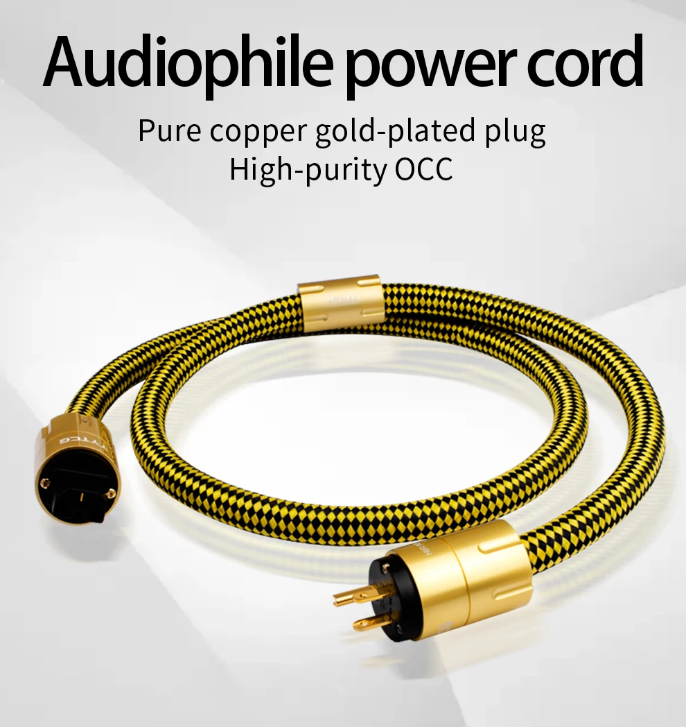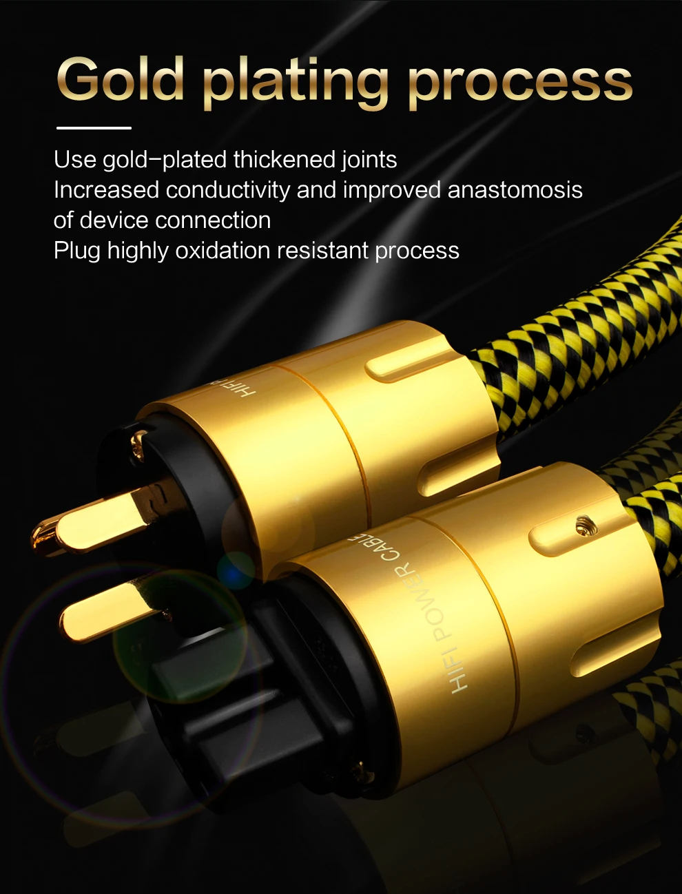 Alta fidelidad Usando múltiples hebras de cobre de cristal único 7N OCC como conductor, diseño de estructura de geometría en espiral, agregue cable nervioso plateado en la línea para reproducción, coopere Enchufe de alimentación chapado en oro de cobre puro, los bajos de reproducción son particularmente fuertes y las ventajas de dinámico y nítido los detalles son particularmente ricos, y el sonido es particularmente Vivid