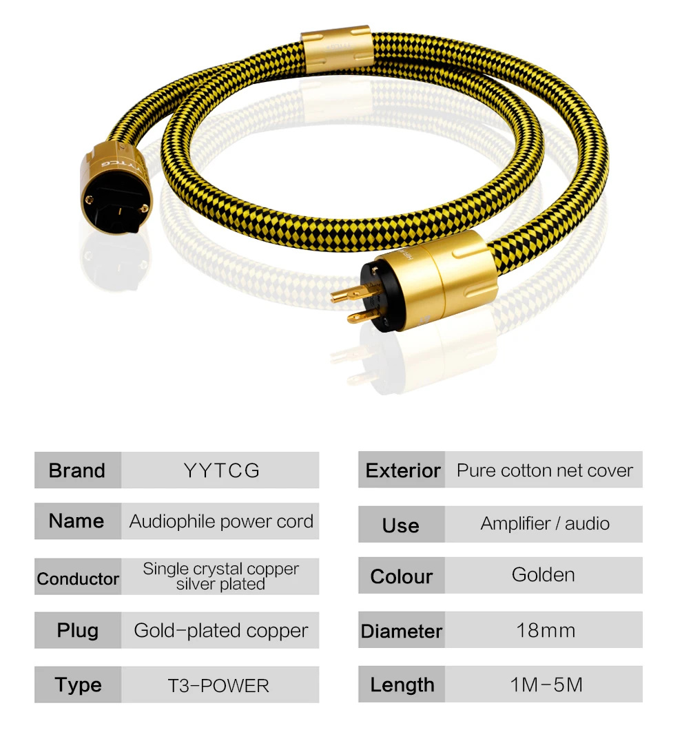Comprar YYTCG-Cable de alimentación de Audio HIFI, enchufe de alimentación 7N OCC de alta calidad, enchufe estándar estadounidense para amplificador de CD