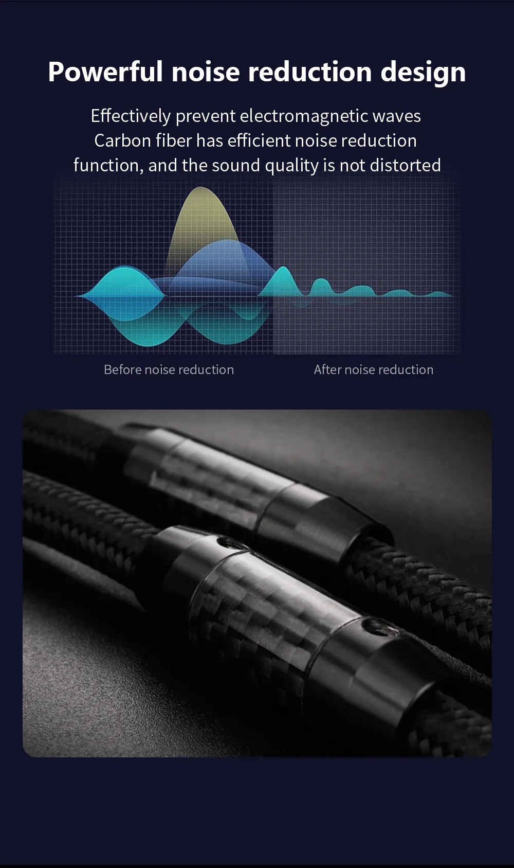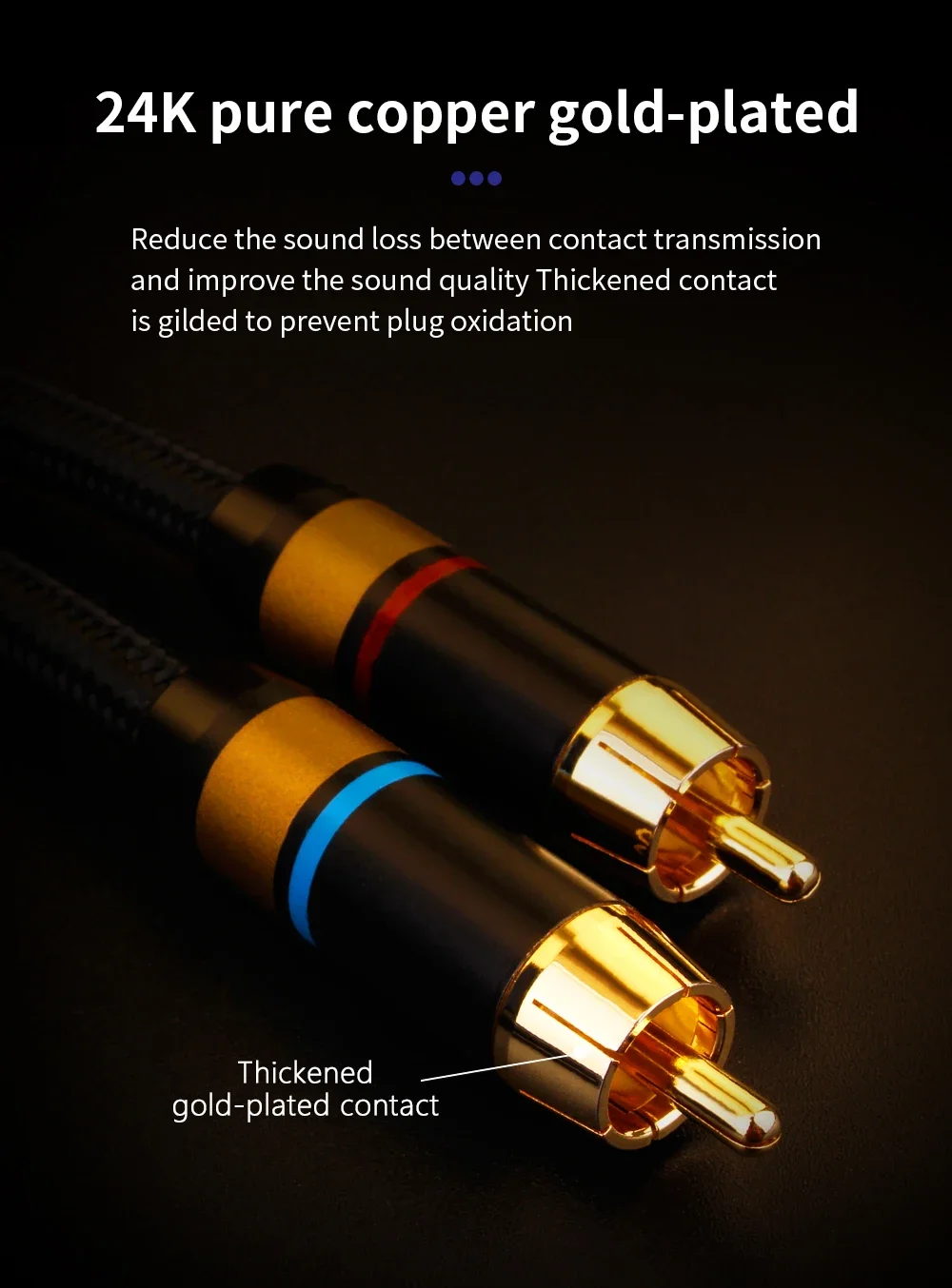 Aplicable: CD/AMP/altavoz/mezclador, etc. Diseño de reducción de ruido de alta potencia Diseño de anillo de fibra de carbono, calidad de sonido sin distorsión Cable OFC de alta pureza, hace que el fondo de la música sea más silencioso, sonido limpio, espesor de frecuencia media, flexibilidad de baja frecuencia, campo de sonido amplio, fuerza estancalitítica, HIFl calidad de sonido. RCA l chapado en cobre puro que mejora la calidad del sonido, chapado en oro con placa táctil gruesa, larga vida útil. Altavoces de conexión del decodificador. La señal se transmite a la caja de sonido sin pérdidas y el buen sonido se restaura y resuelve en un alto grado.