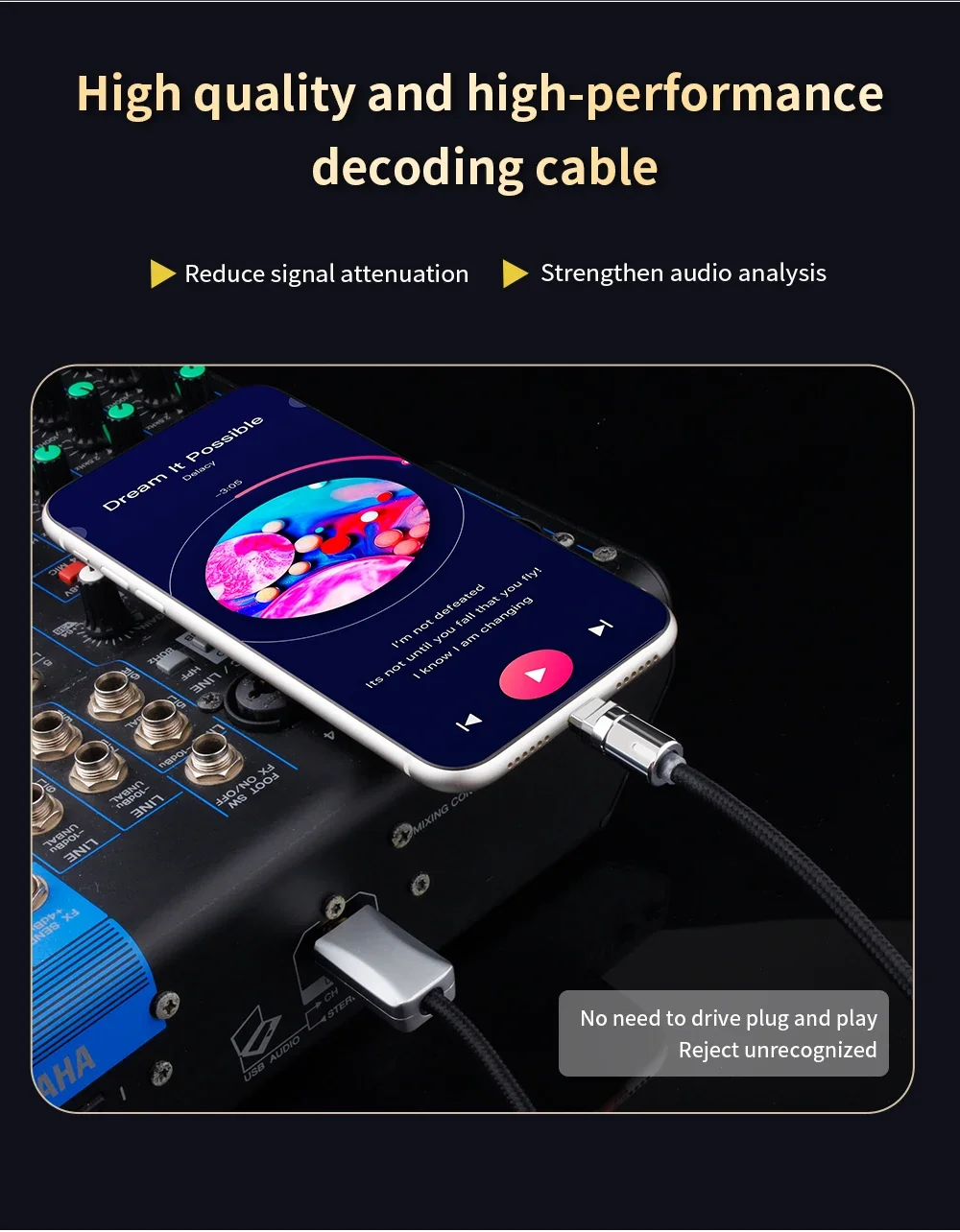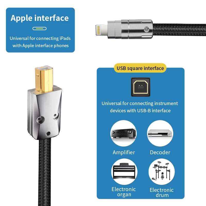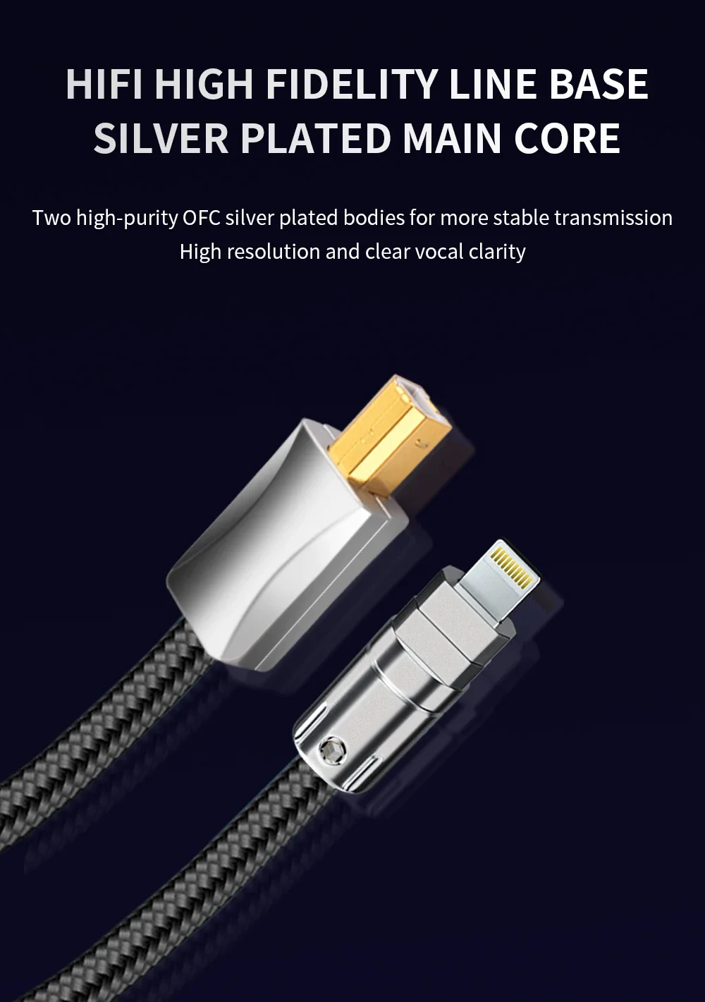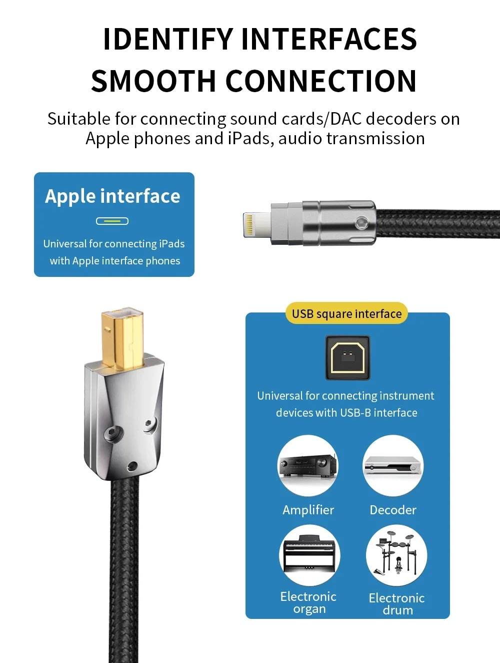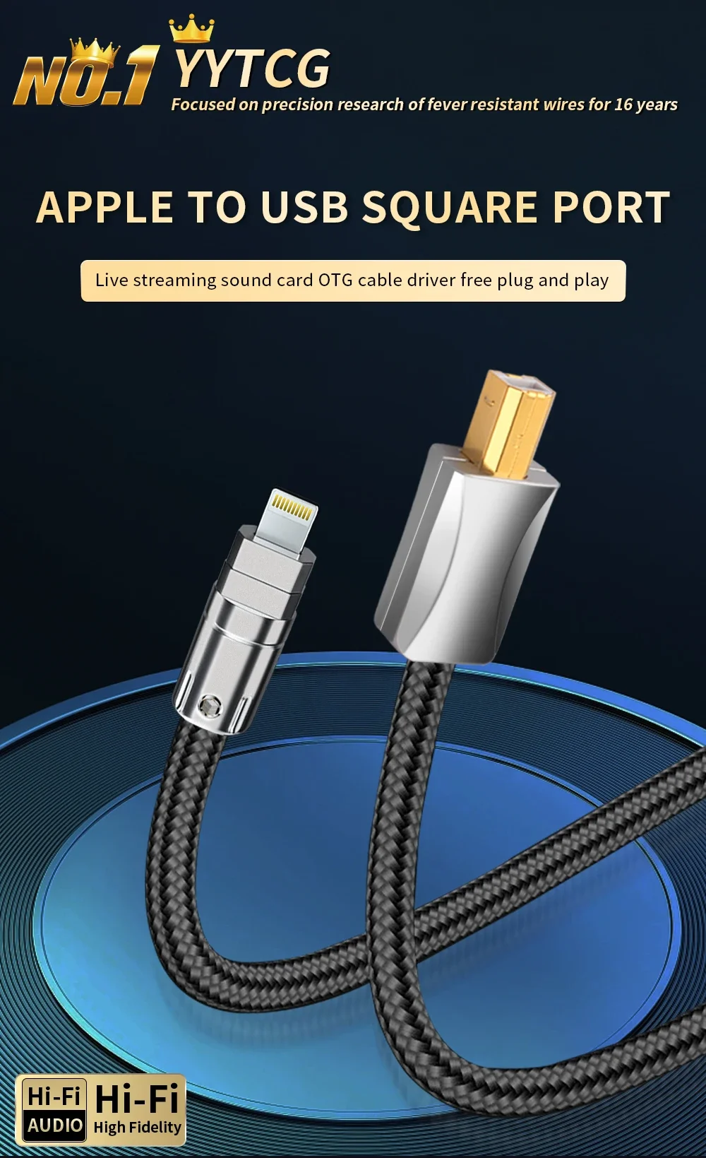 Comprar YYTCG-Cable HIFI Lightning a usb-b OTG, decodificador de alta calidad, chapado en plata, Audio DAC, Cable OTG para decodificador, tarjeta de sonido