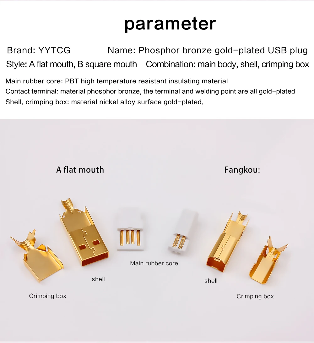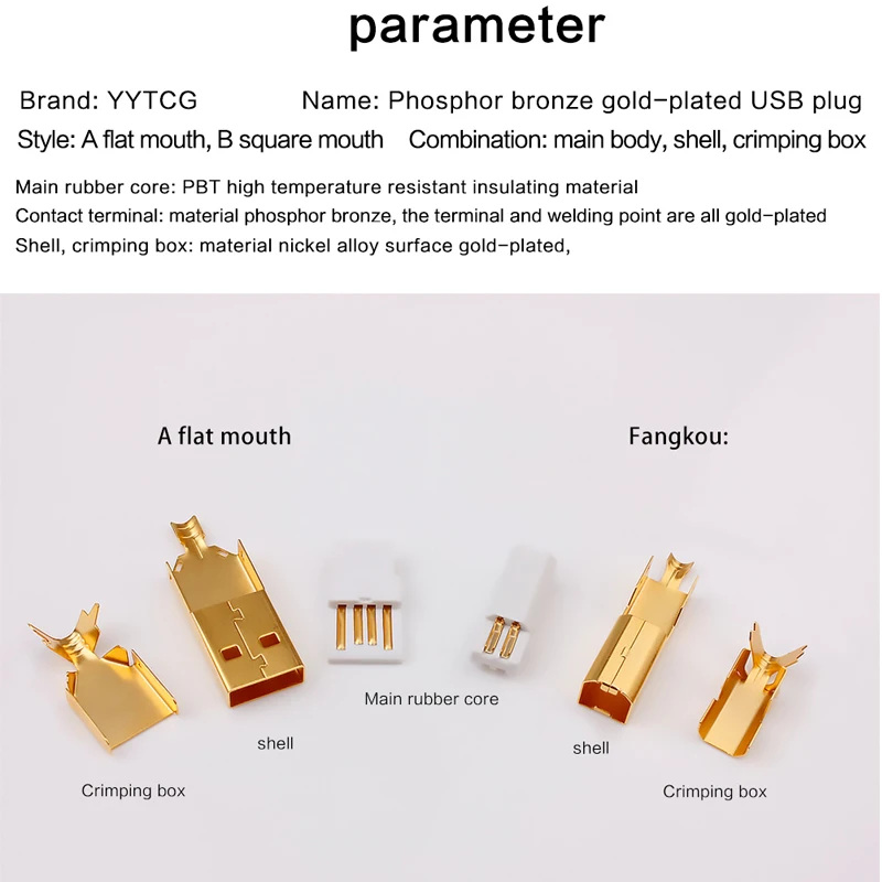Comprar YYTCG-Conjunto de conector USB de alta gama, conector USB A +, tipo B, A-B, audio hifi, para cable USB