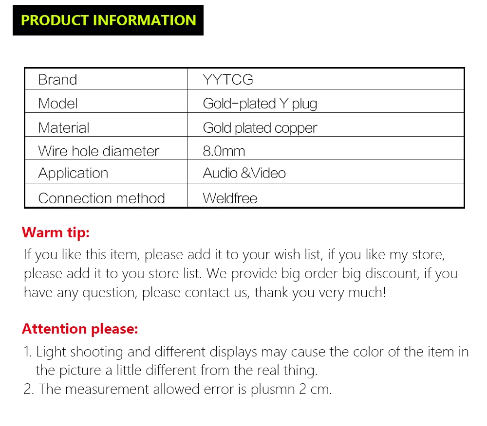 YYTCG 4 unids/lote Y/U tipo enchufes de altavoz de cobre puro 24K conector de Cable de altavoz chapado en oro conector Banana