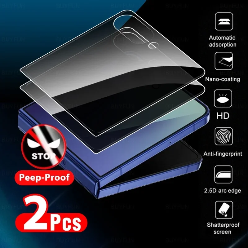 Z Flip 7 2 uds protector de pantalla de privacidad para Samsung Galaxy Z Flip7 Flip7 5G Anti espía protector de vidrio Flip teléfono 7 funda amigable