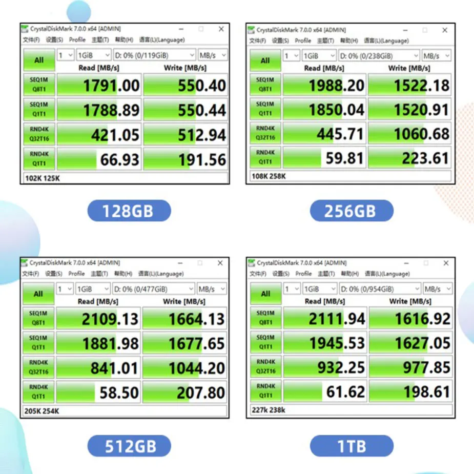 Este producto proporciona principalmente la velocidad de lectura y escritura y la eficiencia de trabajo de la computadora. Otras pruebas de velocidad se verán afectadas por la configuración propia del ordenador.