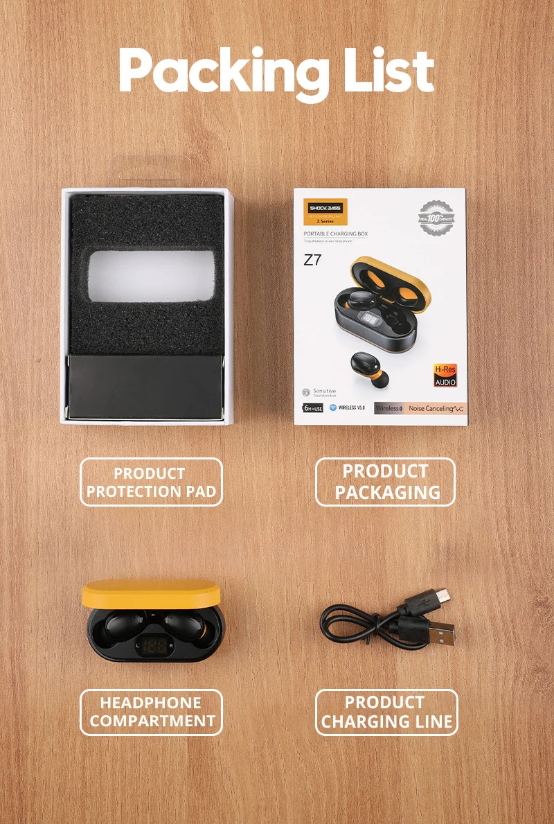 Comprar Z7 TWS auriculares Bluetooth Control táctil cancelación de ruido música auriculares inalámbricos pantalla eléctrica auriculares para juegos con micrófono