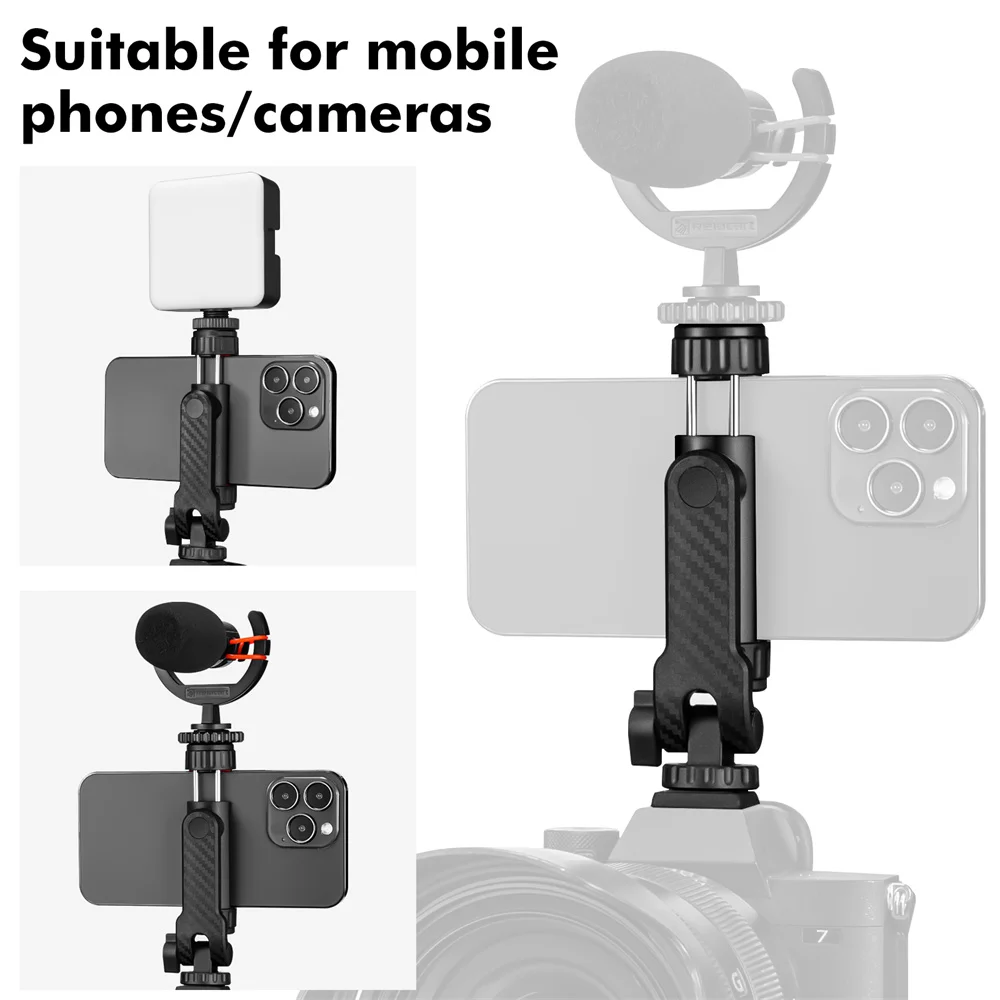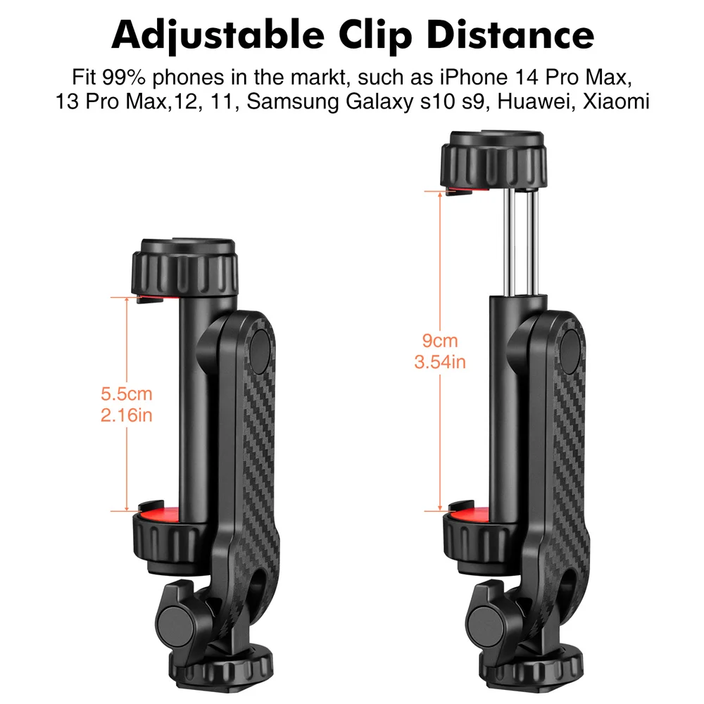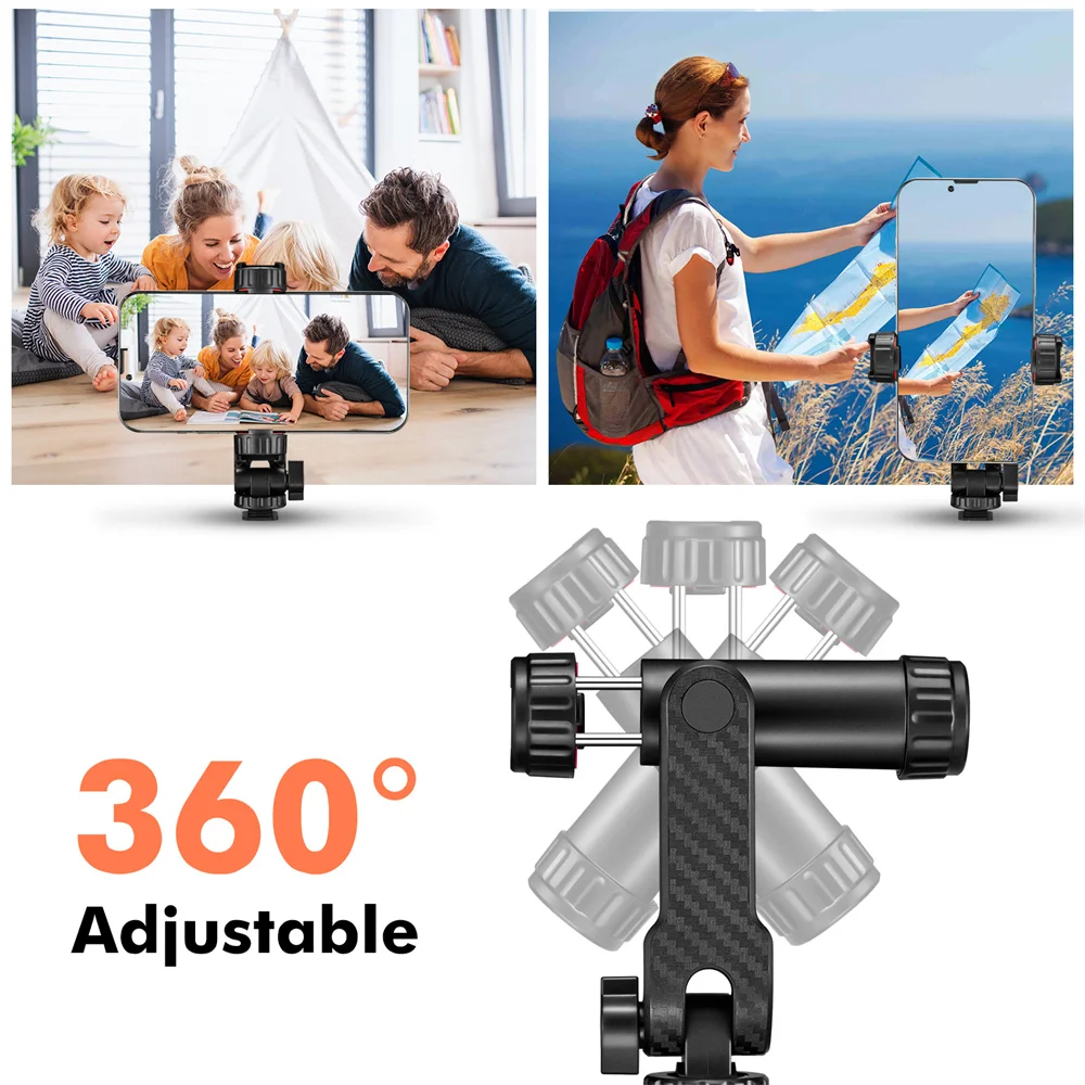 【360° Adjustable Phone Holder】 phone tripod adapter has an adjustable angle design,adopts 360° rotation design to support shooting from different angles,allowing you to adjust the pitch angle on a tripod or camera hot shoe without needing a ball head. It's more convenient and easy to use.