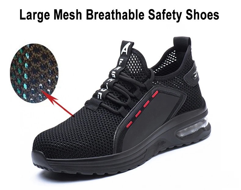 Comprar Zapatos de protección de trabajo transpirables, calzado de seguridad con punta de acero, superficie de malla, antigolpes y antiperforación