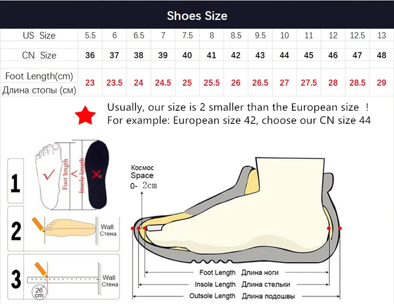 2. Los zapatos son del mismo tamaño que los zapatos de cuero, si sus pies son un poco más anchos, debe elegir un tamaño más grande.