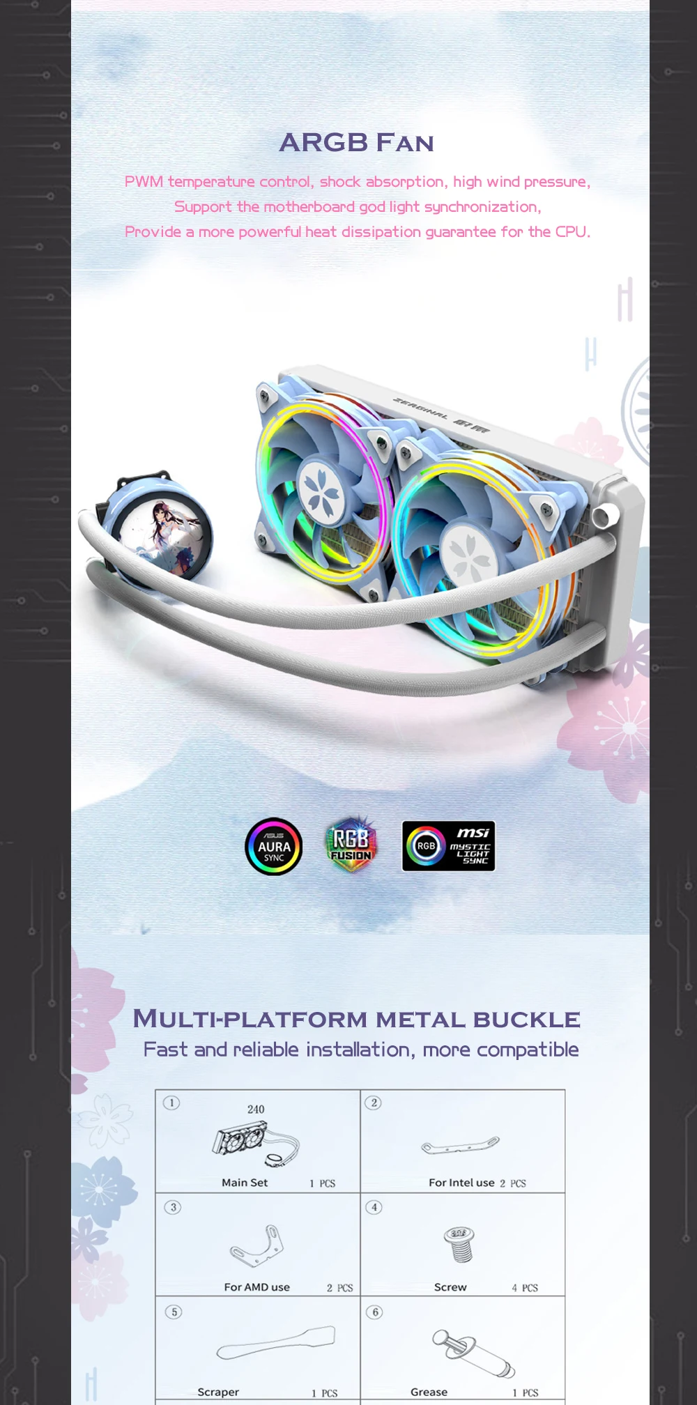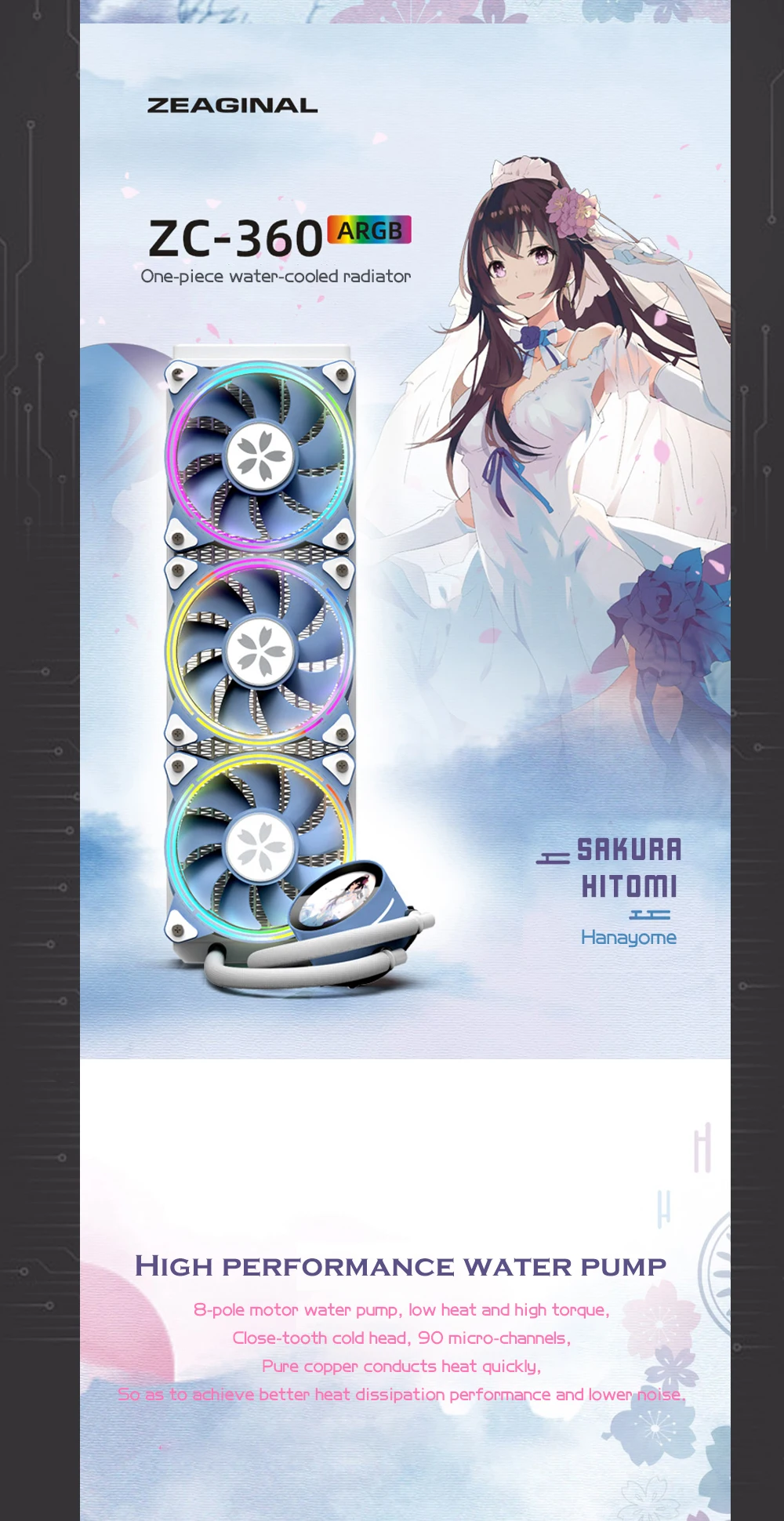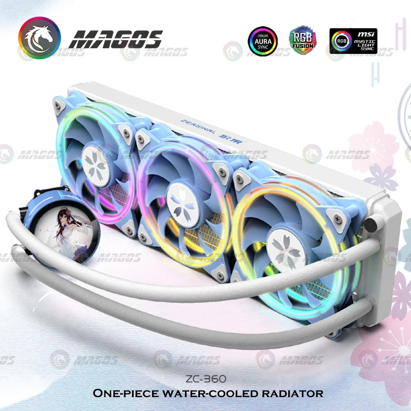 Comprar ZEAGINAL-Kit de refrigeración de CPU YESTON Sakura Hitomi 360 AIO, radiador de CPU refrigerado por agua todo en uno, 900-1800RPM, sincronización de 5V y 3 pines